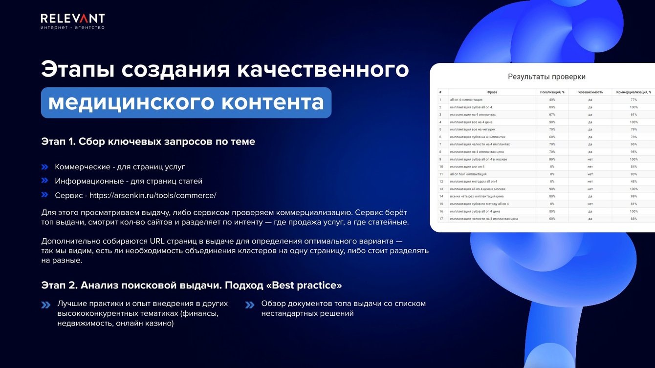 — Контент-маркетинг начинается с учёта SEO-требований и анализа конкурентов, с обязательной проверкой врачами.