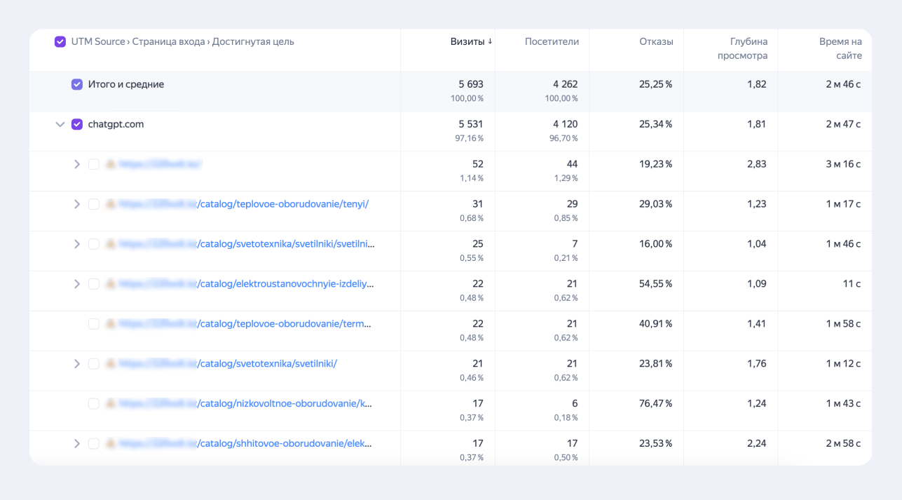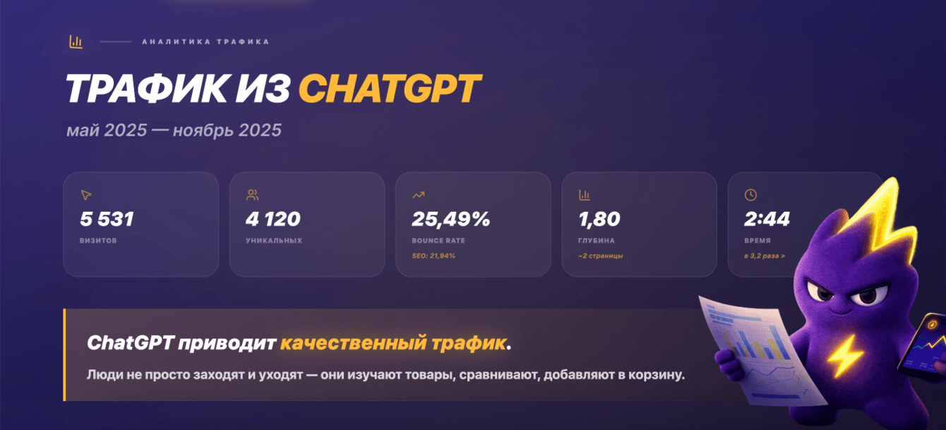 ⚡ Анализировали поведение пользователей из ChatGPT: bounce rate, глубину, конверсии