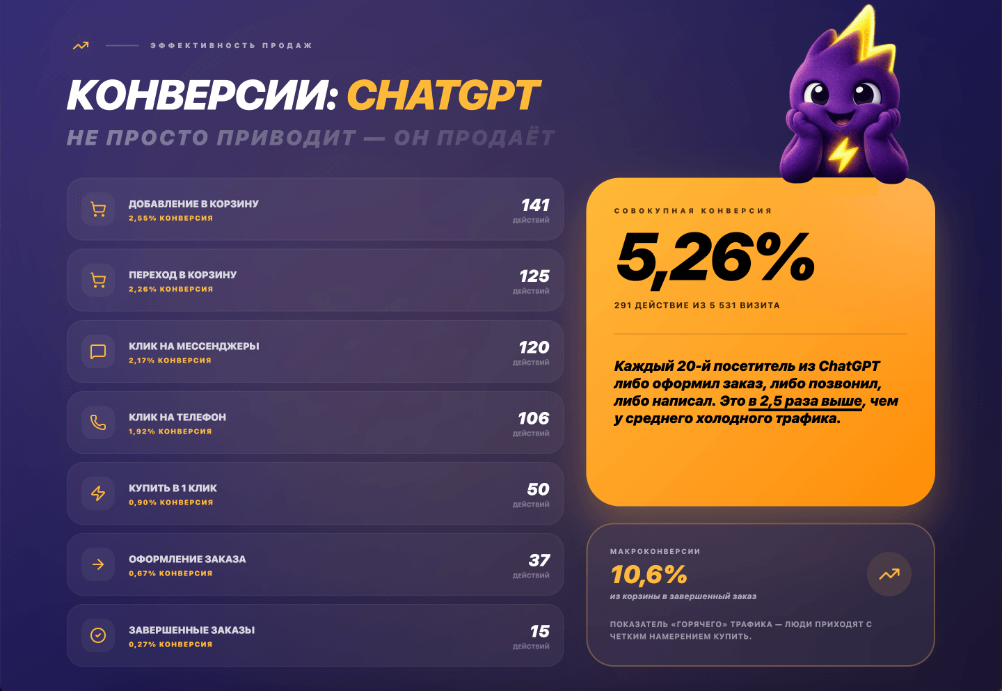 Конверсии: ChatGPT не просто приводит — он продаёт