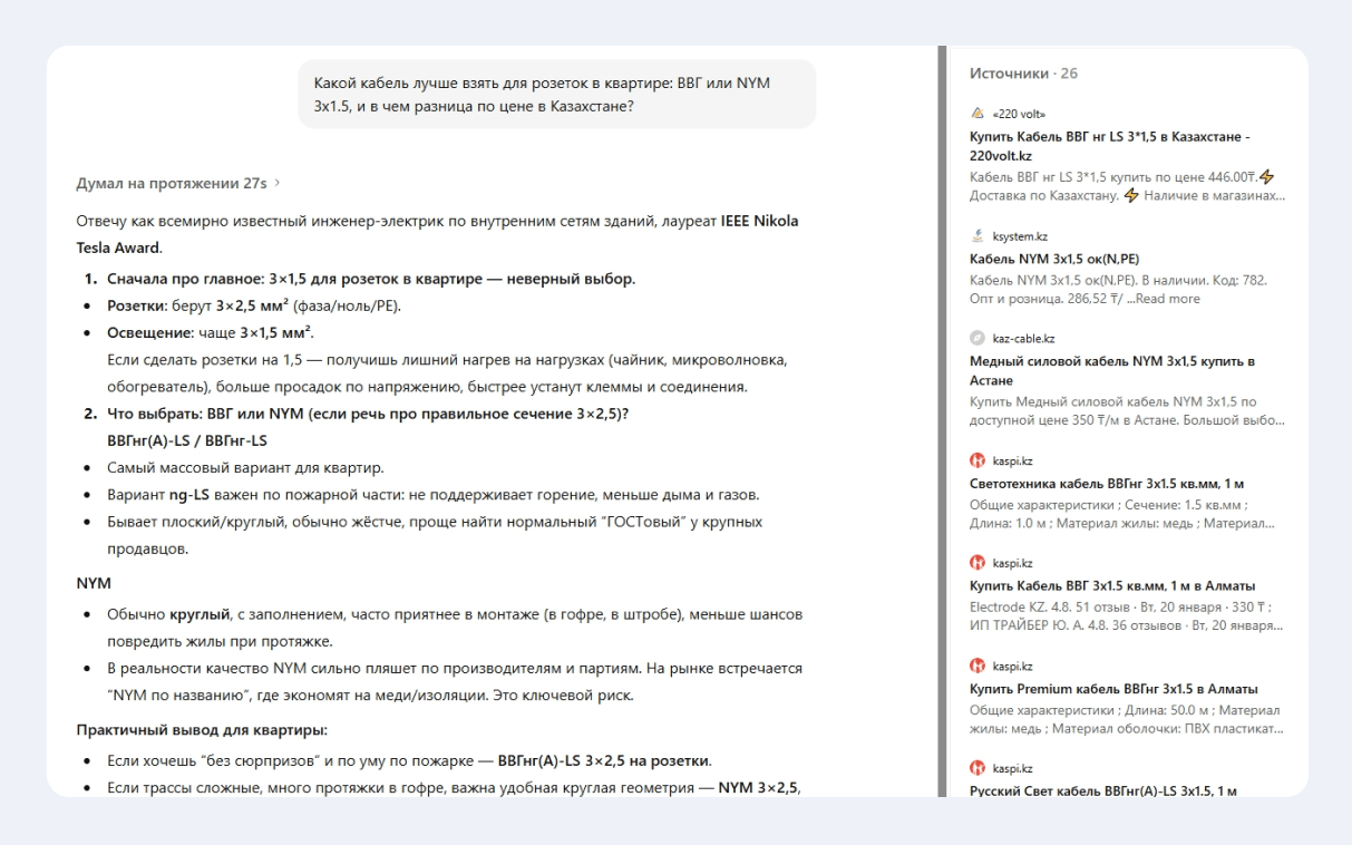 💡 Для справки: В 2024 году 509,4 млн человек использовали ChatGPT хотя бы раз. В 2025 эта цифра вырастает до 644 млн. И если раньше люди гуглили «купить кабель NYM 3х1.5», то теперь они просто спрашивают ChatGPT: «Какой кабель нужен для проводки в квартире?» И получают готовый ответ — часто с рекомендацией конкретного магазина.