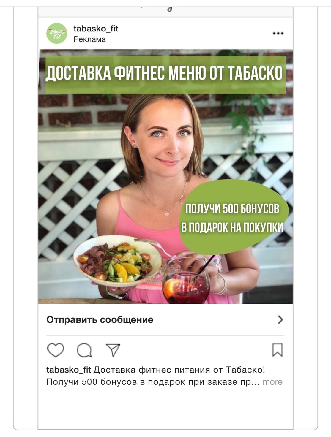 В июле нам удалось привлечь через Instagram 150 лидов (запросов на подбор меню), из которых 48 перешли в реальные заказы. Цена лида составила 96 рублей, цена заказа - 300 рублей. Конверсия в покупку - 32%. Рекламный бюджет - 14 400 рублей.