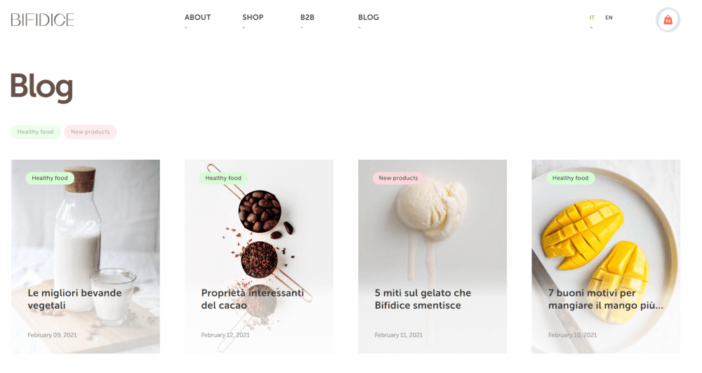 Bifidice находится в нише функциональных продуктов, где потребителю нужно объяснять полезность товара и обучать уходу за здоровьем. Для образования покупателей мы внедрили на сайте блог, где заказчик размещает просветительский и продающий контент.