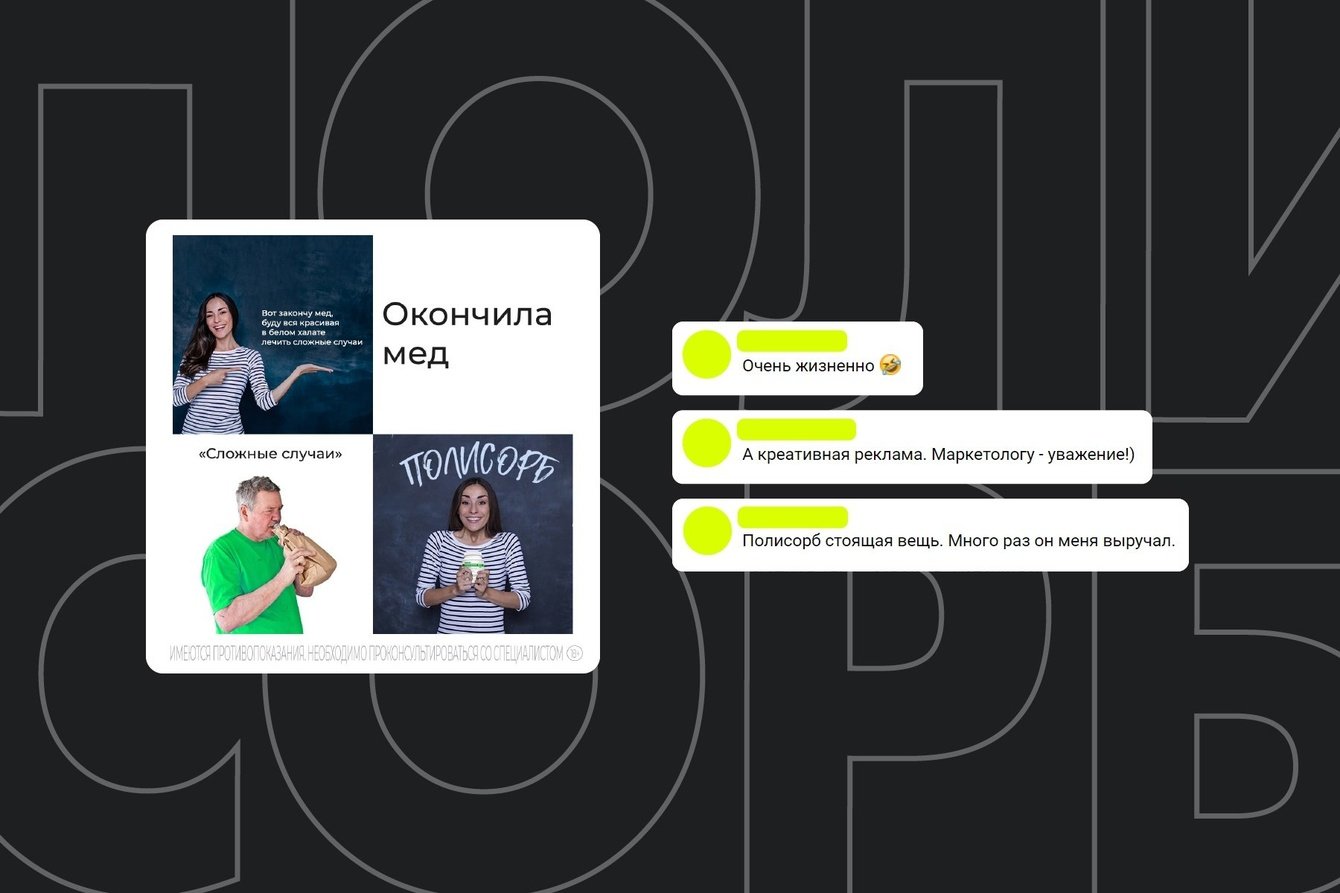 В мае мы провели охватную рекламную кампанию для бренда «Полисорб». У нас не было привлекательных УТП или необычной визуальной концепции, но была главная валюта интернета — мемы. Рассказываем, как смогли охватить несколько миллионов аудитории за две недели.
