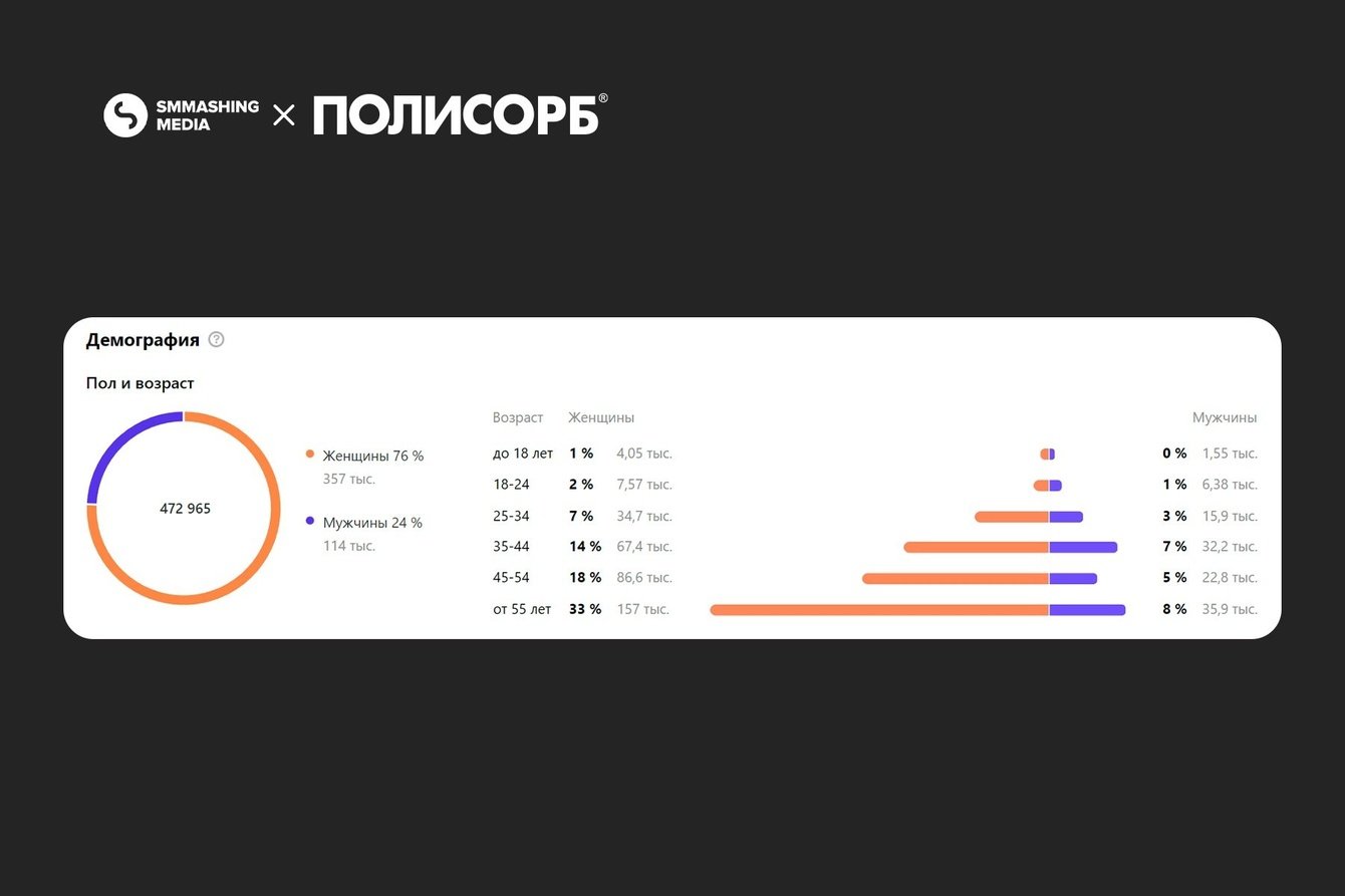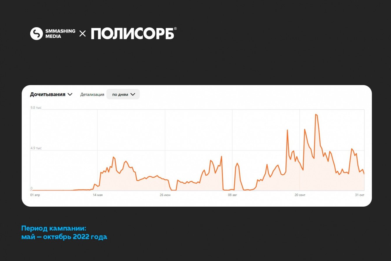 Дзен посещают в среднем 59 млн человек в месяц, но при написании статей ориентировались, конечно, на ядро нашей целевой аудитории — это женщины от 35 лет и выше, проживающие на территории страны, и которых волнует здоровье семьи. Их достаток не так важен, поскольку покупка Полисорба доступна практически каждому.