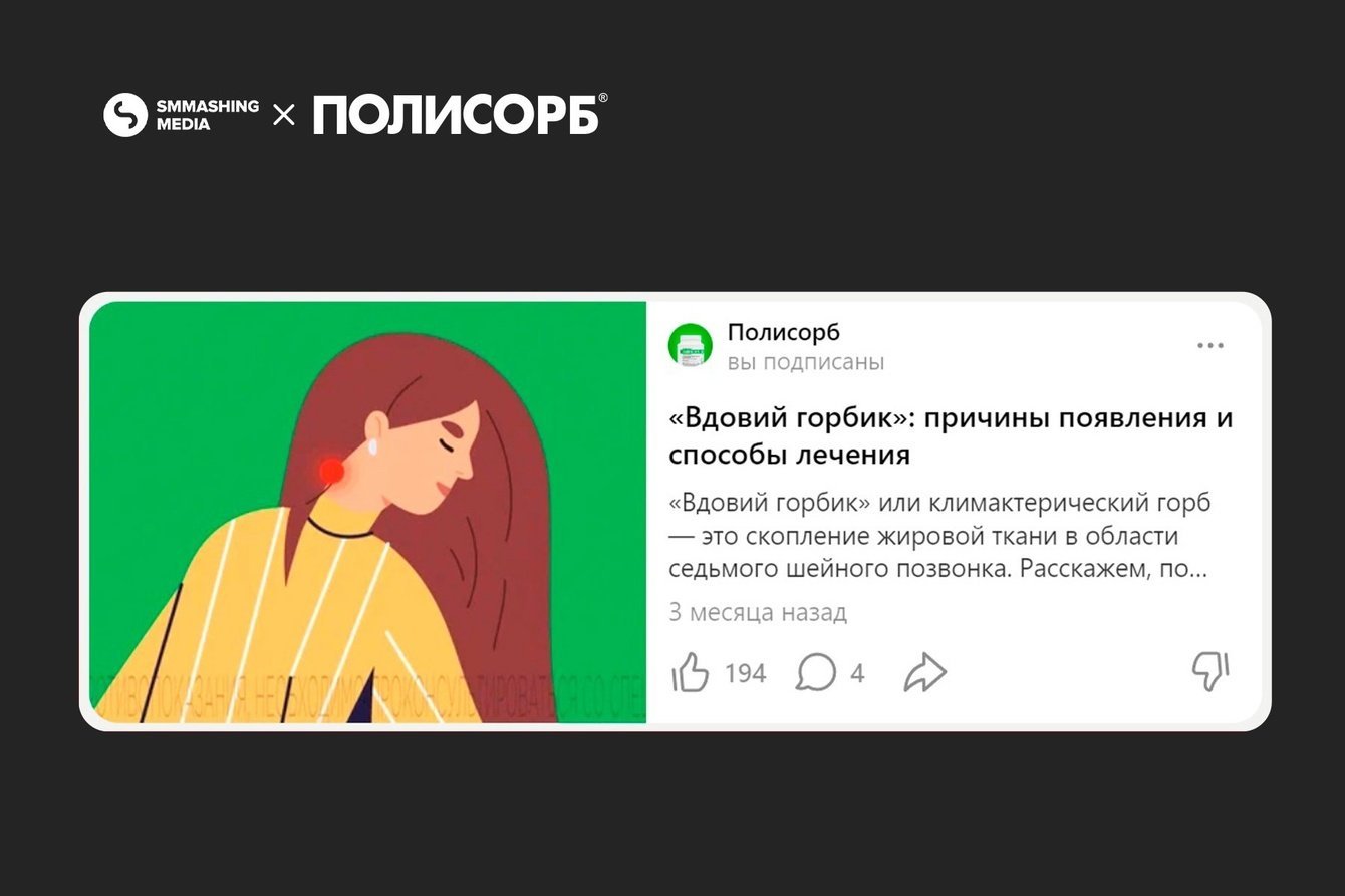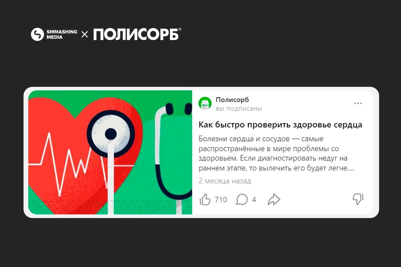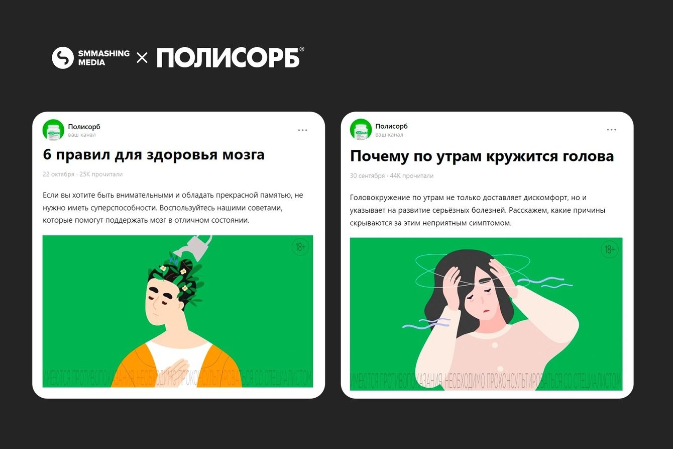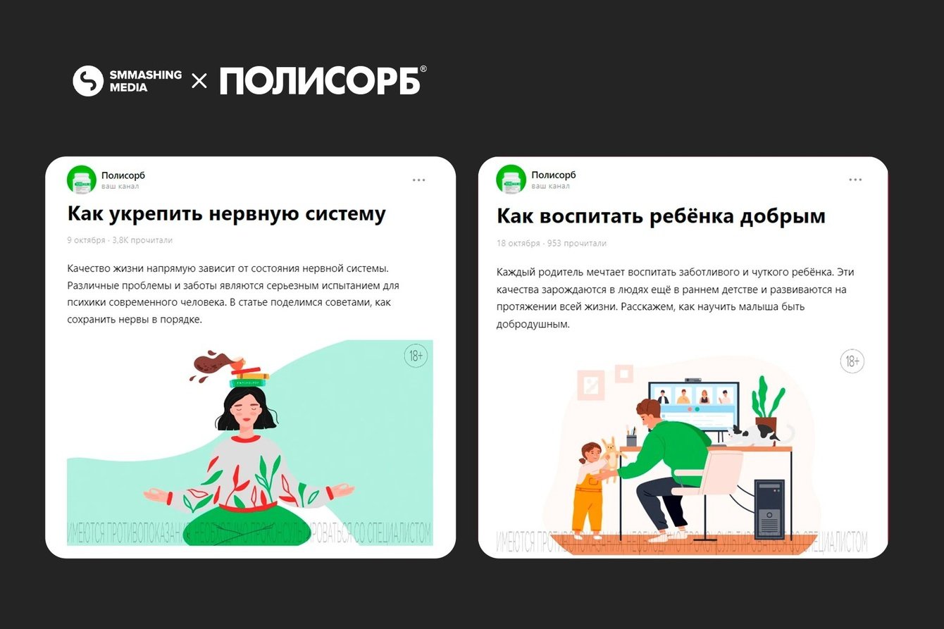 Полисорб — лекарственное средство широкого спектра действия. Мы подключились к его ведению на «Яндекс.Дзен» в мае 2022 года. Канал посвящён темам физического и душевного здоровья: здесь лайфхаки о правильном питании, чек-листы полезных привычек и советы по экологичному образу жизни.