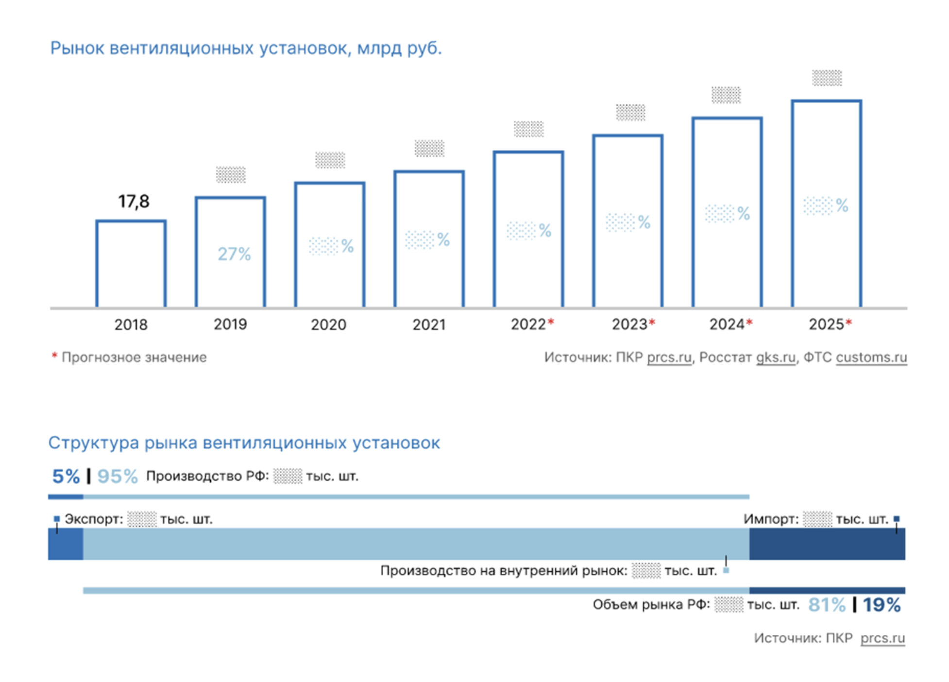 На этапе изучения анализа рынка мы выявили положительную динамику рынка вентиляционных услуг в стоимостном выражении, а также тенденцию превышения объемов внутреннего российского производства над объемами импорта.