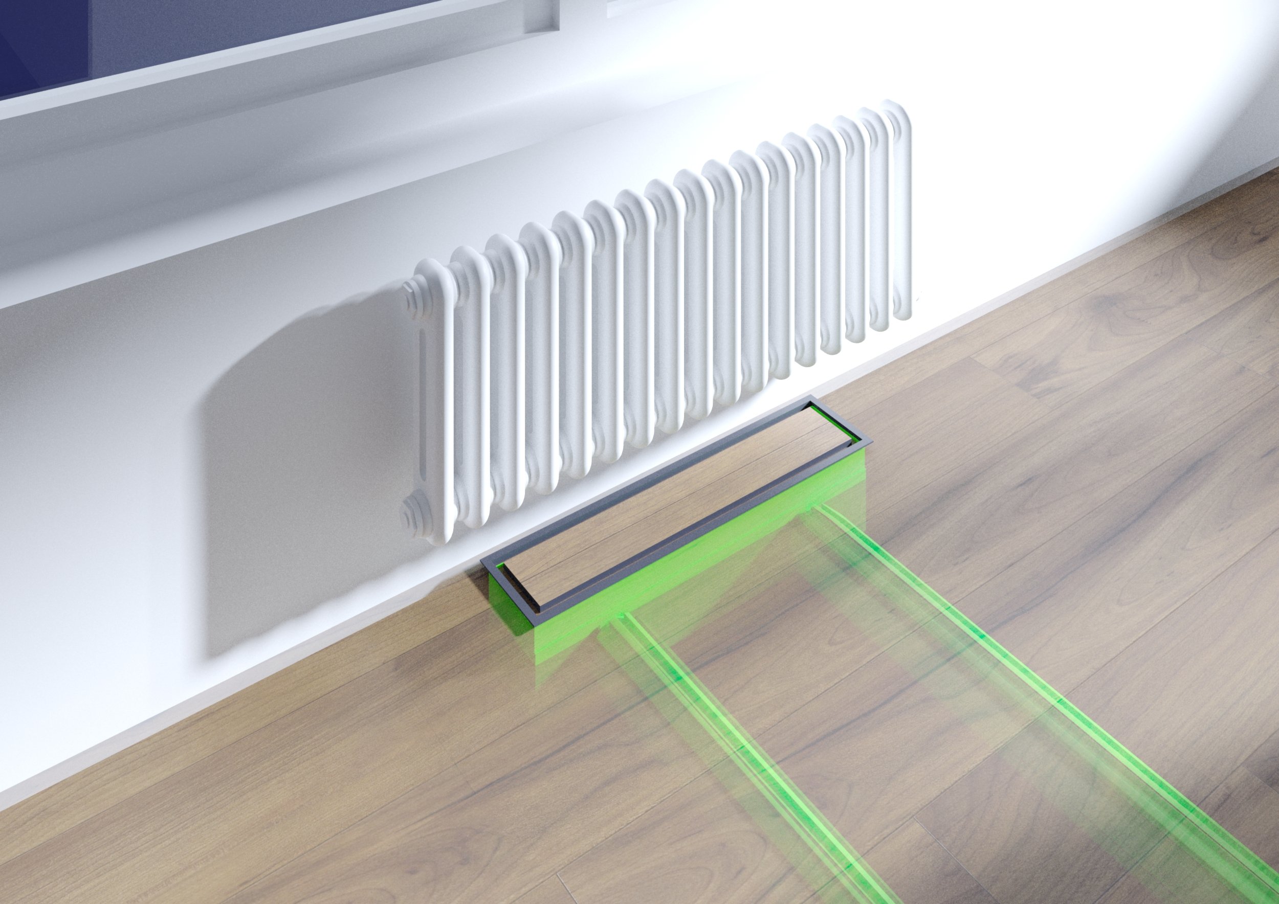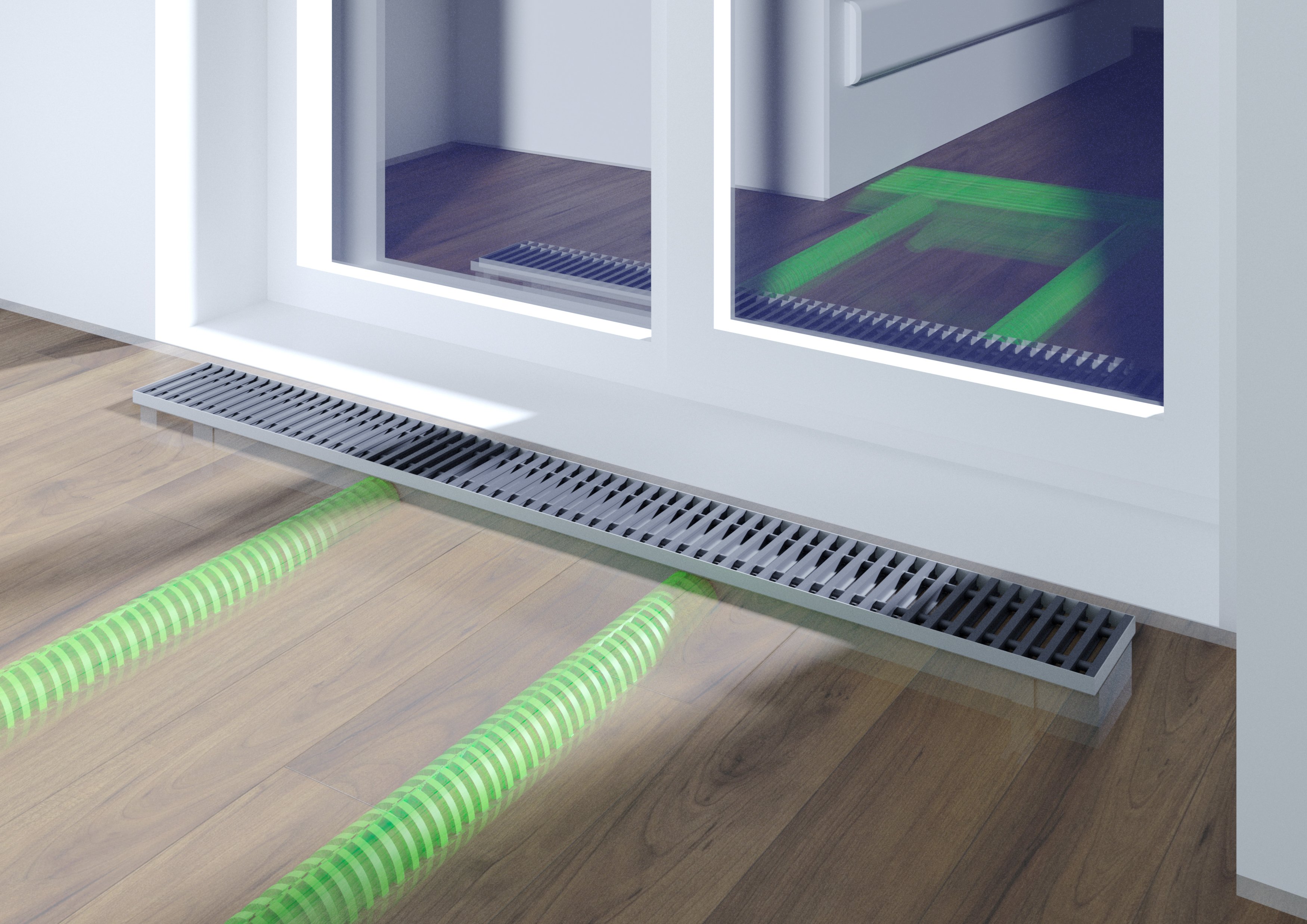 1. Прокладка воздуховодов в стяжке пола через внутрипольные конвекторы отопления