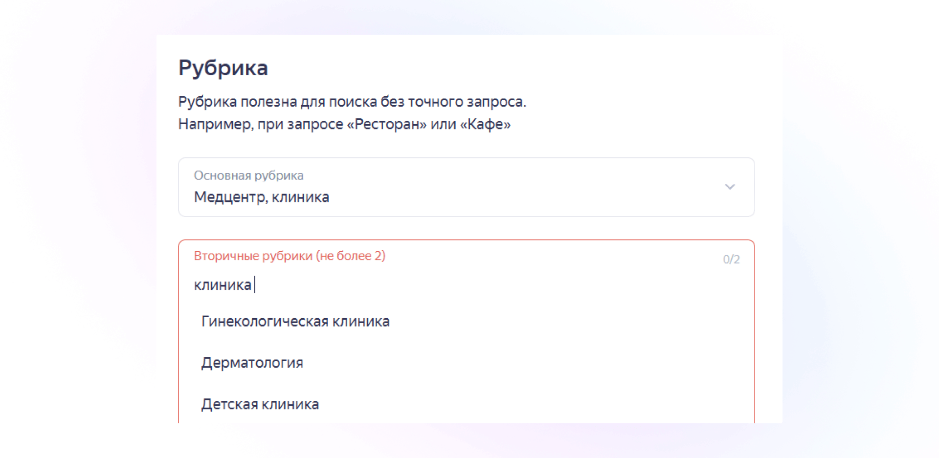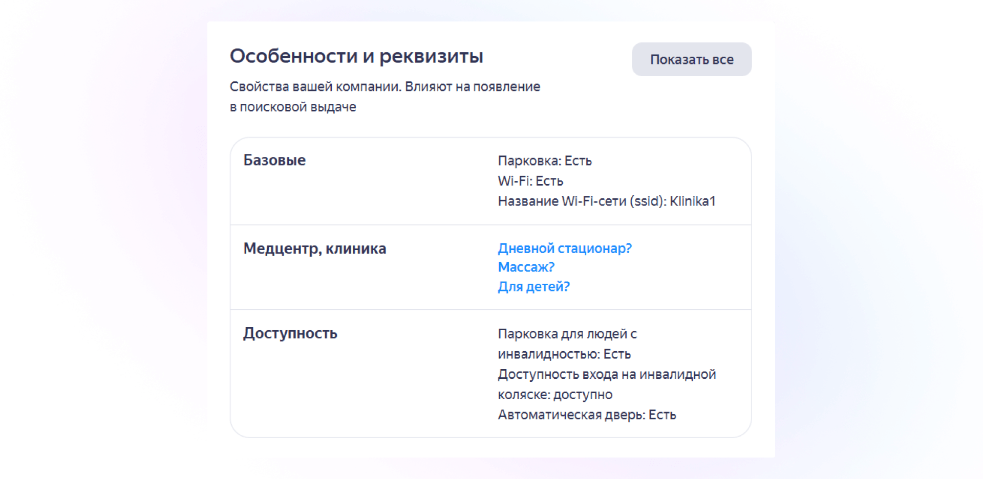 После аналитики мы собрали все карточки клиники и объединили их в единую сеть. Так мы смогли управлять каждой карточкой точечно и при этом не потерять ни одну площадку. Такой подход удобен при запуске рекламы — можно распределять бюджет как по всей сети, так и по отдельным филиалам.