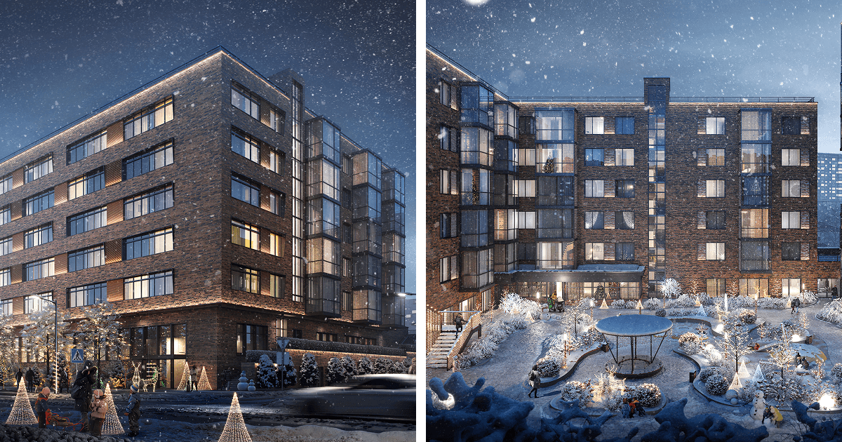 Рендерами мы хотели подчеркнуть тональность и камерность жилого комплекса в разное время года. Особое внимание в визуализации уделили преимуществам авторского дома. Для этого дополнительно нарисовали 3D-визуализацию бульвара, который проходит вдоль дома. Он обещает стать одним из любимых мест для прогулок жителей дома и города.