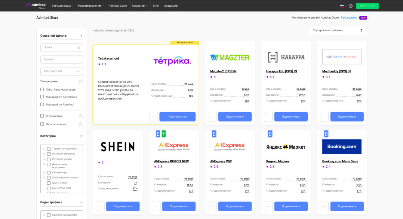 Полный перезапуск основного продукта Admitad - каталог программ c новым сервисом рекомендаций.