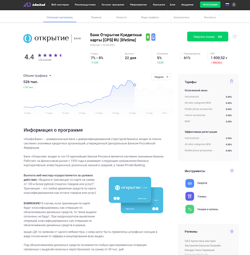 - Управление 2 основными продуктами компании Admitad