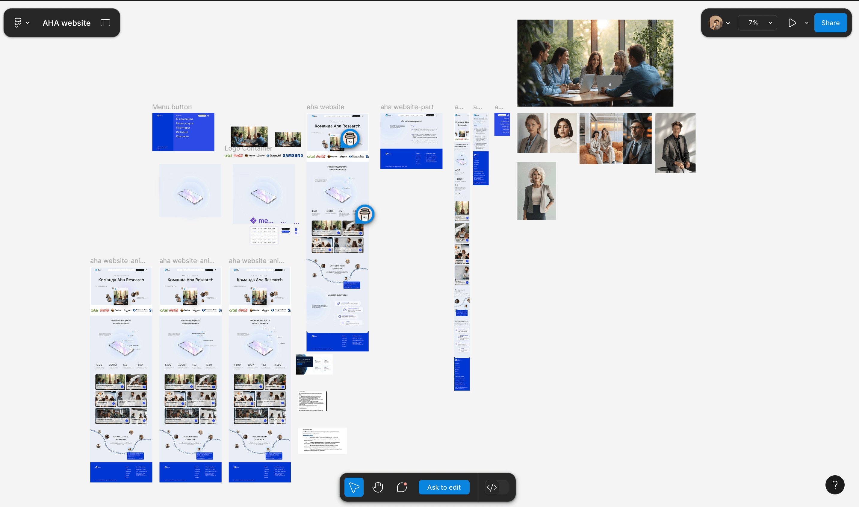 Создать современный, стильный и удобный сайт для исследовательской компании AHA Research, который будет отражать профессионализм бренда и привлекать новых клиентов. Важно было полностью закрыть все этапы: от проектирования UX/UI дизайна до покупки домена, настройки сервера и запуска сайта в продакшн.