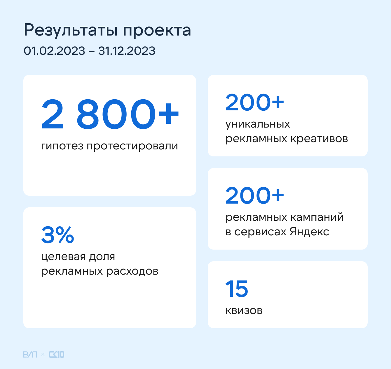 В итоге за 11 месяцев нашей команде удалось протестировать 2800 гипотез.