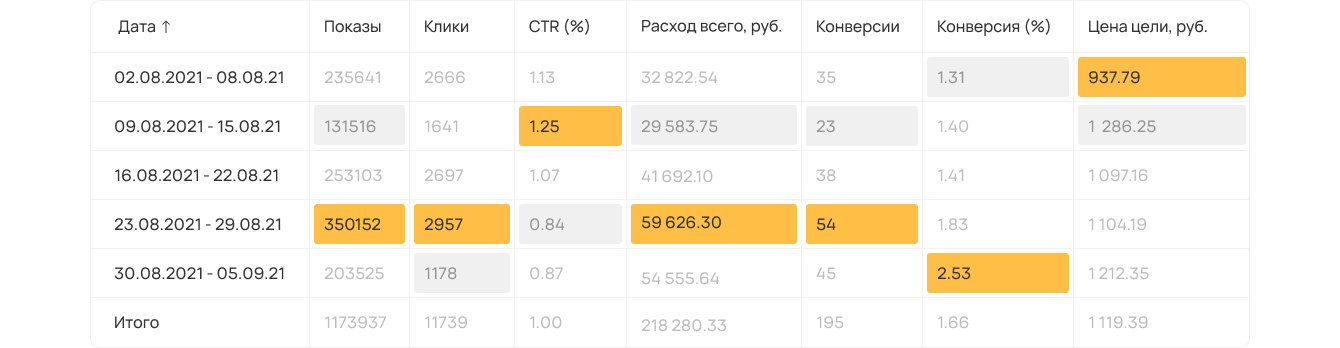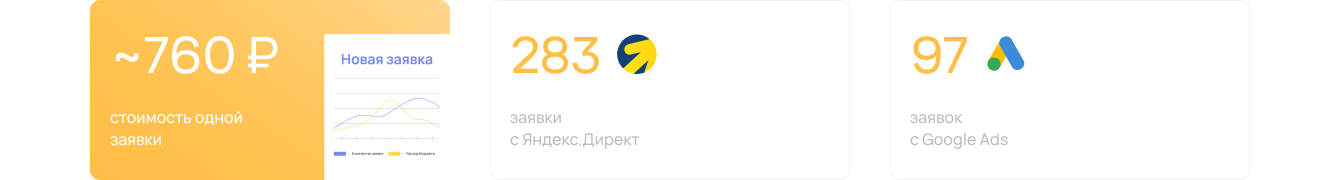 На этапе предпроектной работы было согласовано, что для обеспечения рентабельности инвестиций необходимо получать заявки стоимостью не более 800 руб./лид. При этом, желательно было получать не менее 10 обращений каждый день.
