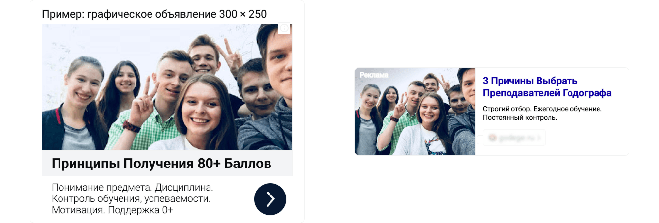 Для рекламных кампаний в сетях мы использовали яркие и эмоциональные снимки учащихся центра в различных форматах: 1х1, 4х3, 16х9.