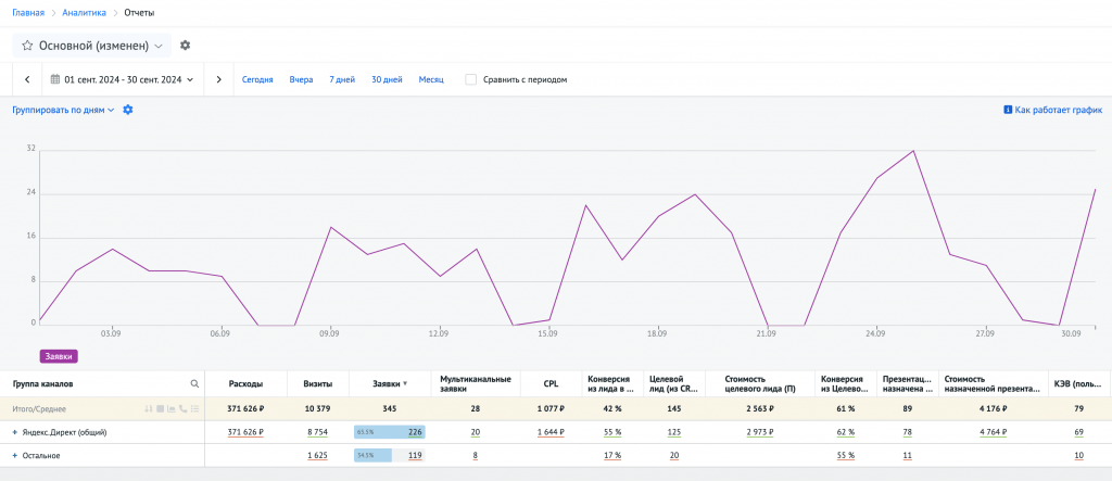 *изменились критерии оценки целевого лида, теперь целевой заявкой считалась заявка с потенциальной выручкой от 100 тыс. руб. за заказ (отсеиваем всех маленьких)