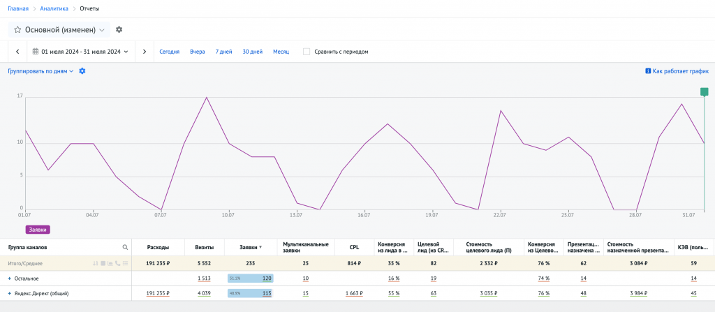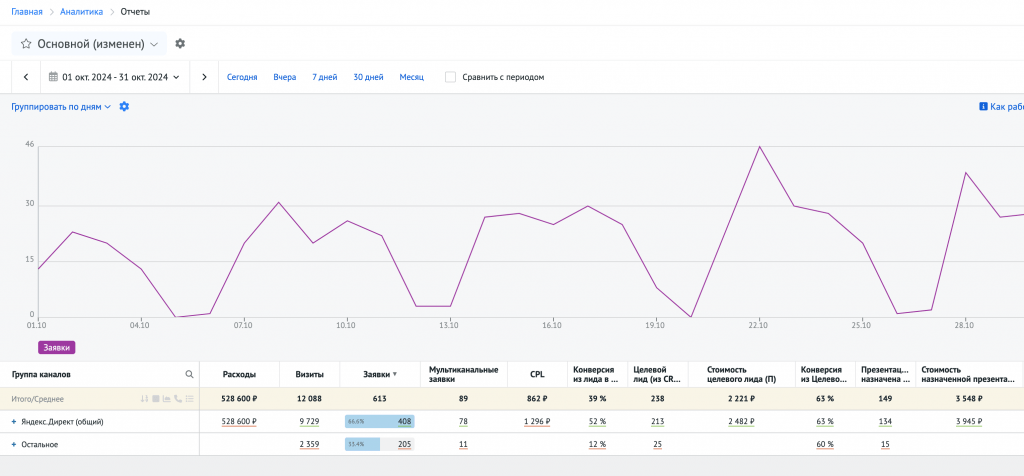 *изменились критерии оценки целевого лида, теперь целевой заявкой считалась заявка с потенциальной выручкой от 100 тыс. руб. за заказ (отсеиваем всех маленьких)