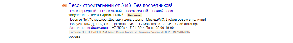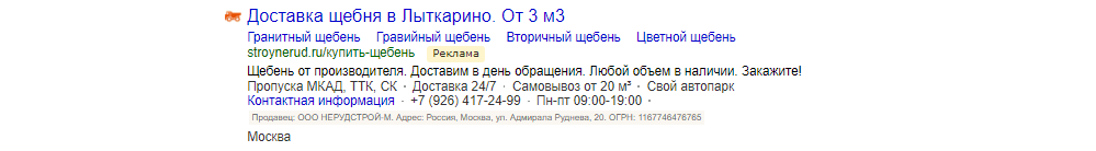 Одновременно с этим дорабатываем тексты объявлений, чтобы они отражали преимущества, и прорабатываем расширенный сниппет: добавляем быстрые ссылки с описаниями, цены, визитки, дополнительную информацию.