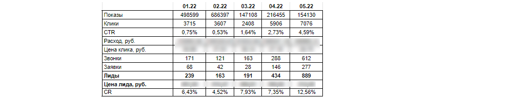 Если в мае 2021 года рекламные кампании принесли менее 600 обращений, то в мае 2022 они дали почти 900 конверсий.