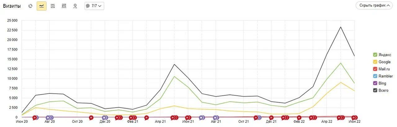 По сравнению с маем 2021 года поисковый трафик в мае 2022 вырос более чем на 70%