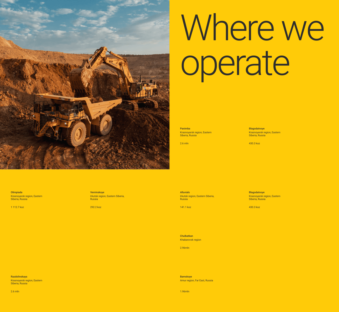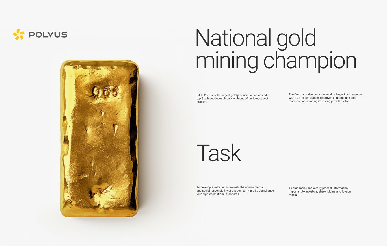 Сайт для компании Полюс — крупнейшего производителя золота в России и одной из 10 ведущих глобальных золотодобывающих компаний.