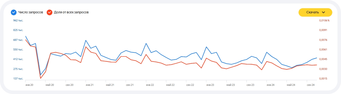 Выраженной сезонности в нише фитнес-клубов – нет. Спрос распределяется равномерно в течение года. Всплески бывают только в январе, когда люди массово обновляют абонементы в начале года или хотят успеть на сезонные акции.