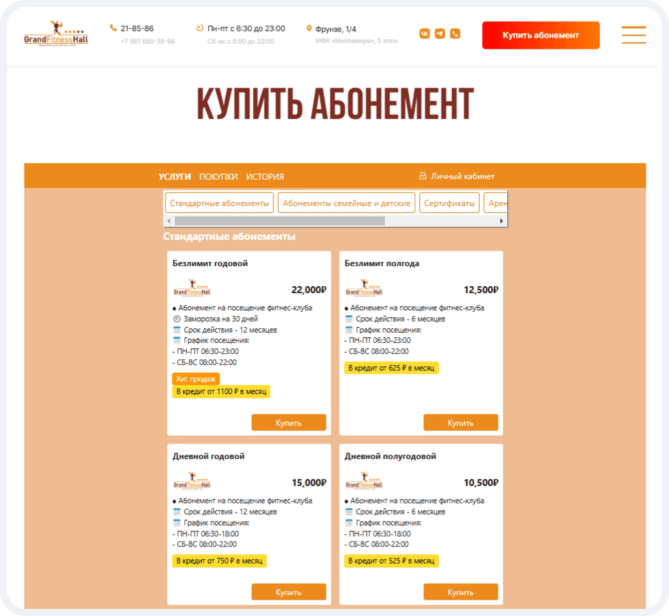 Планировали создать отдельные страницы для каждого направления фитнес-клуба. Сделать мультилендинг, где у каждой услуги будет своя отдельная страница с подробным описанием.