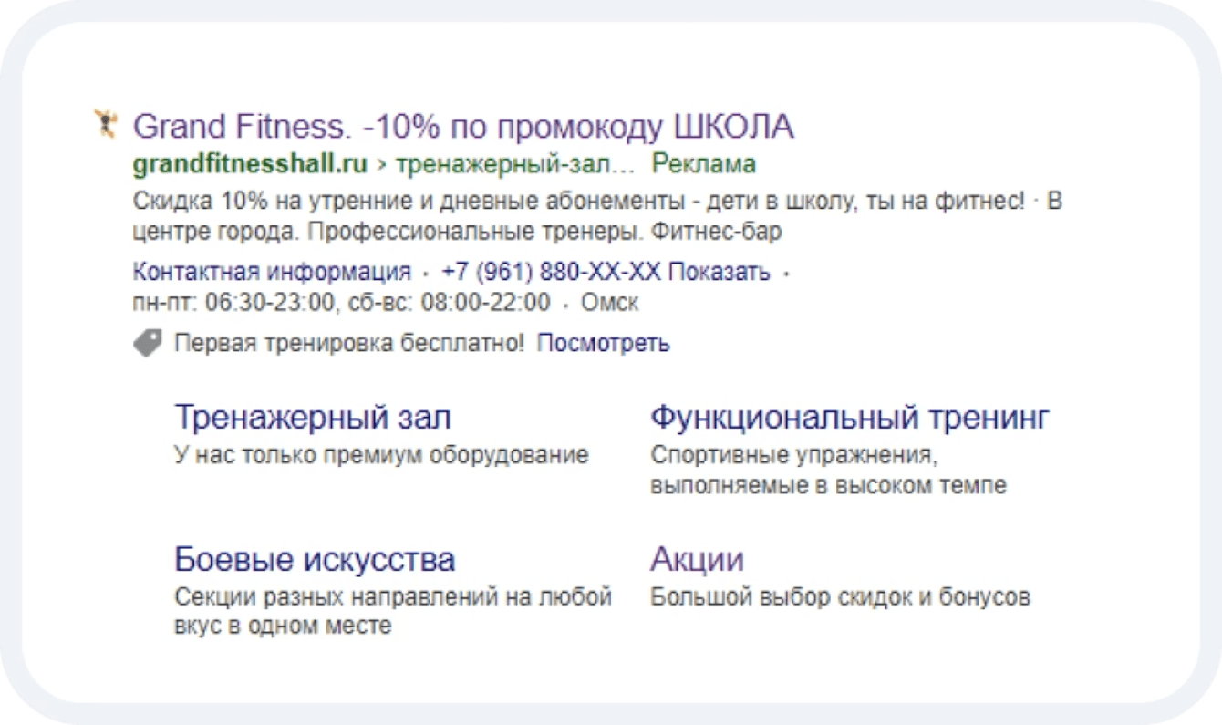 Это убирает лишние действия на стороне пользователя, так как с рекламы он сразу попадает на интересующую его услугу. И при условии, что с рекламы пришел целевой трафик, то вероятность оформления абонемента выше.