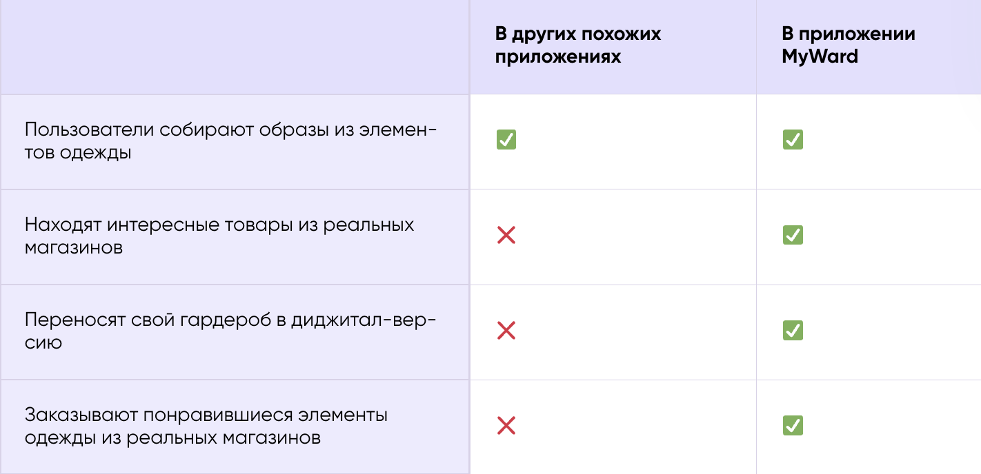 Похожие решения уже существовали на рынке. Вот только было одно важное «но»: вещи и аксессуары в них не из каталогов реальных магазинов, а из фотостоков или случайных сайтов. Пользователи могли составить лишь примерные образы, но ни купить эти конкретные вещи, ни добавить элементы своего гардероба у них не получилось бы.