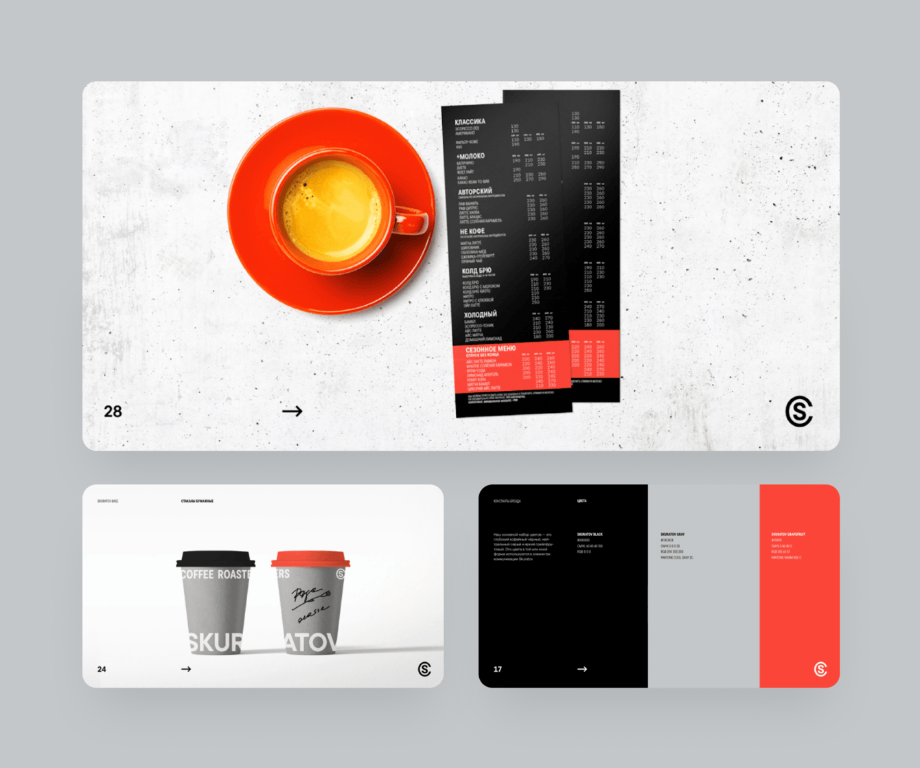 Например, иллюстрации в меню, на пачках кофе и стаканчиках. Получилось, что дизайн мобильного приложения был в одной вселенной, а новый брендбук Skuratov — в другой. А нужен был их кроссовер.
