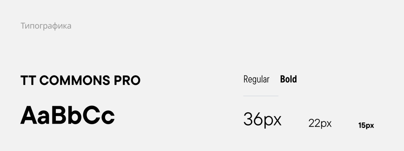 В качестве шрифта выбрали TT Commons Pro — он геометрический, универсальный, в меру строгий.