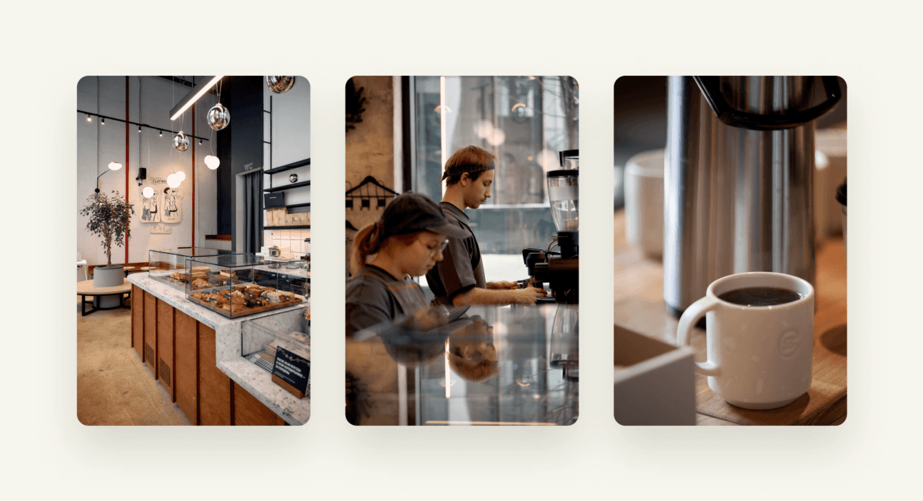 Вместе с командой Skuratov мы продумывали визуальный стиль для фотографий, которые будут использоваться в приложении. Было важно, чтобы фотоконтент не конфликтовал с дизайном. Сфокусировались на интерьерных фото из кофеен и чашках с напитками.