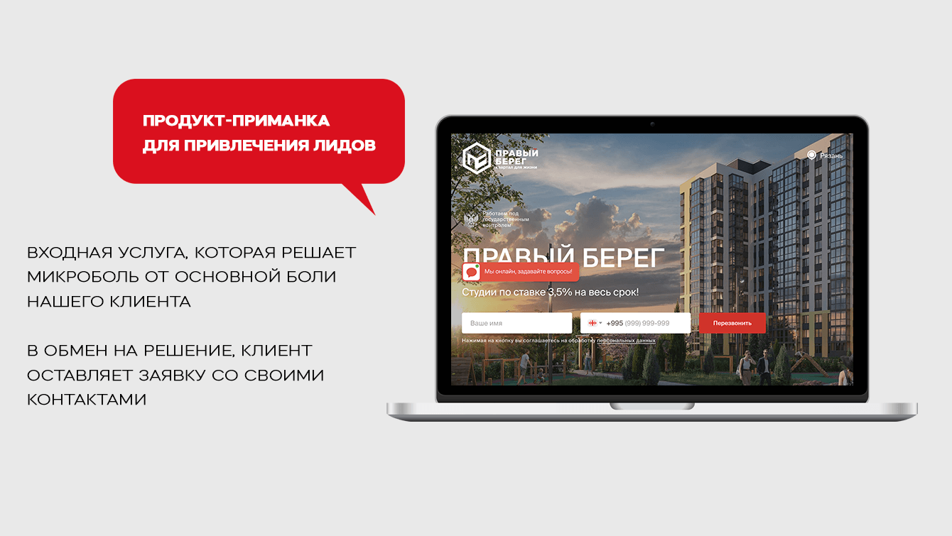 1. Разработали продукт-приманку от застройщика, на который привлекали заявки