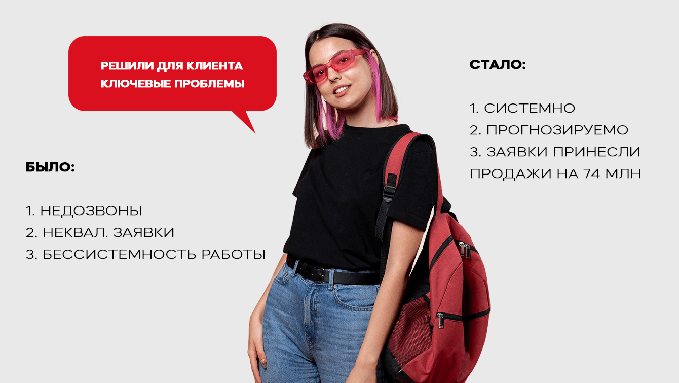 Как только мы разработали отдельную страницу под наше предложение, конверсия в заявку увеличилась, а цена заявки упала в два раза. Количество квалифицированных заявок выросло.