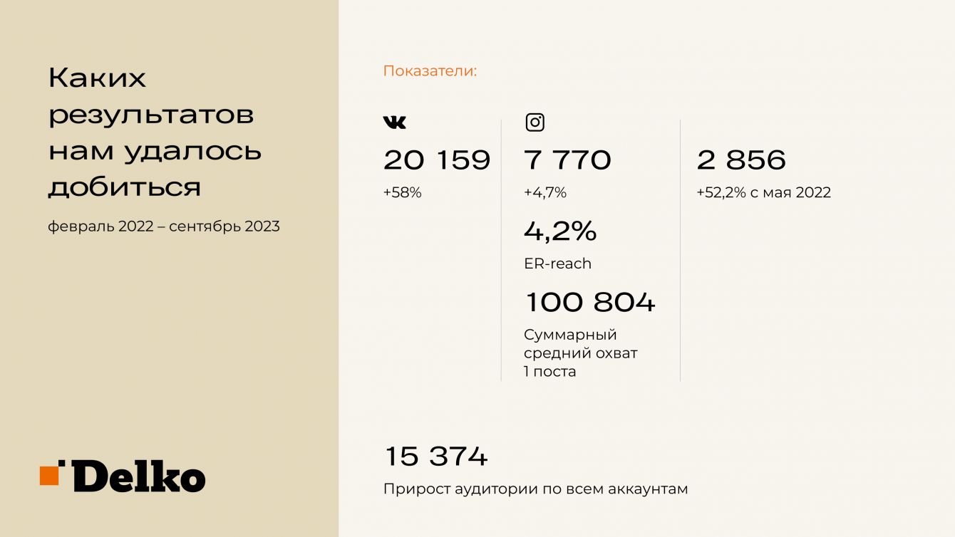Мы ведём внутрикорпоративные аккаунты Delko, в которых рассказываем о жизни компании, о карьерных возможностях, обучении. И многом другом.