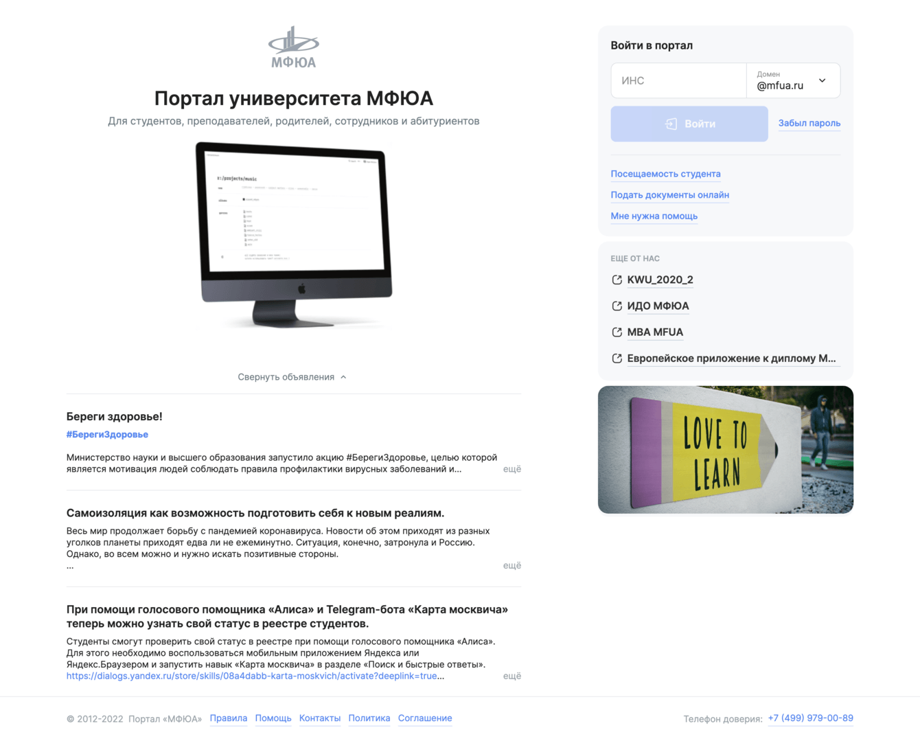 В результате внедрения и запуска портала удалось организовать комфортное и продуктивное взаимодействие между студентами учебных групп, куратором и преподавателями, а также поддержать высокое качество образования, предлагаемое ВУЗом.