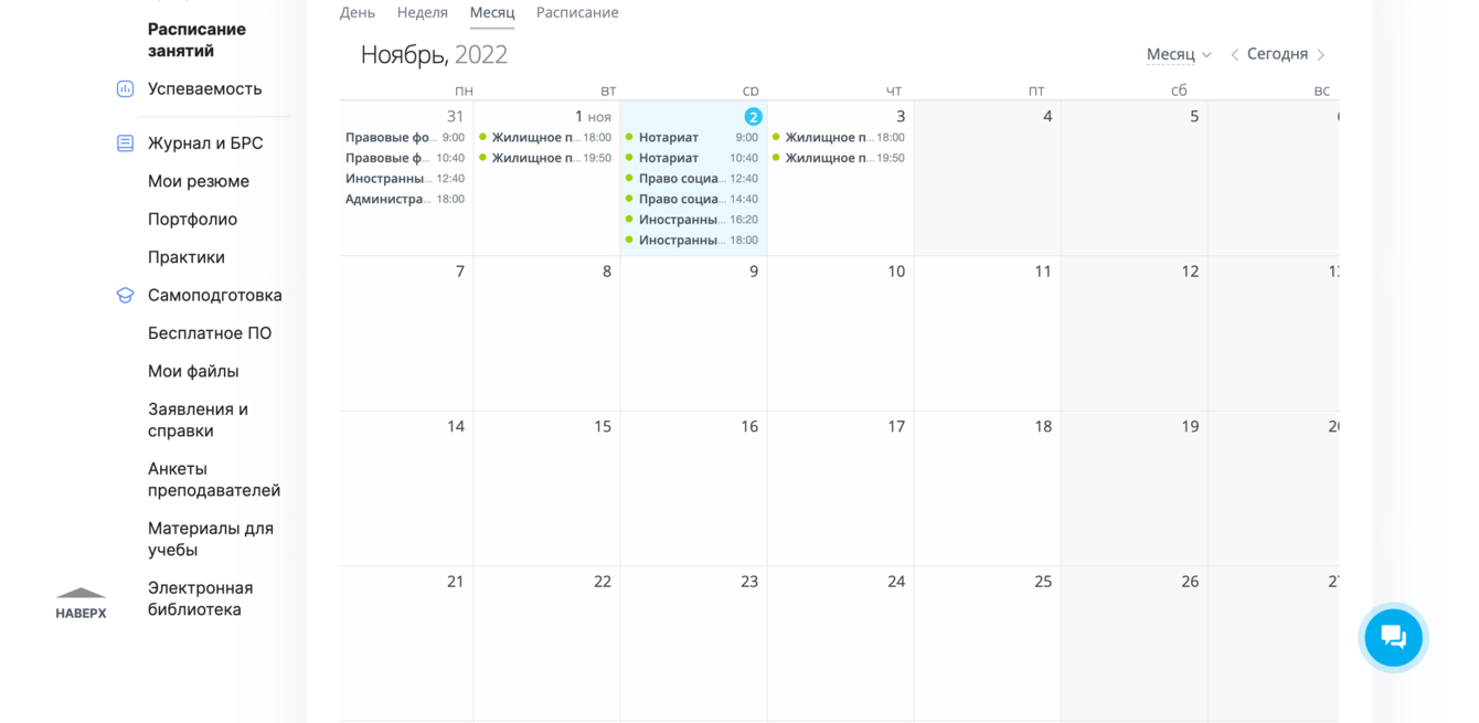 2. Расписание лекций и семинаров размещено на портале и обновляется в режиме реального времени как преподавателями, так и студентами с указанием фамилии того, кто внес изменения, и времени последних правок.