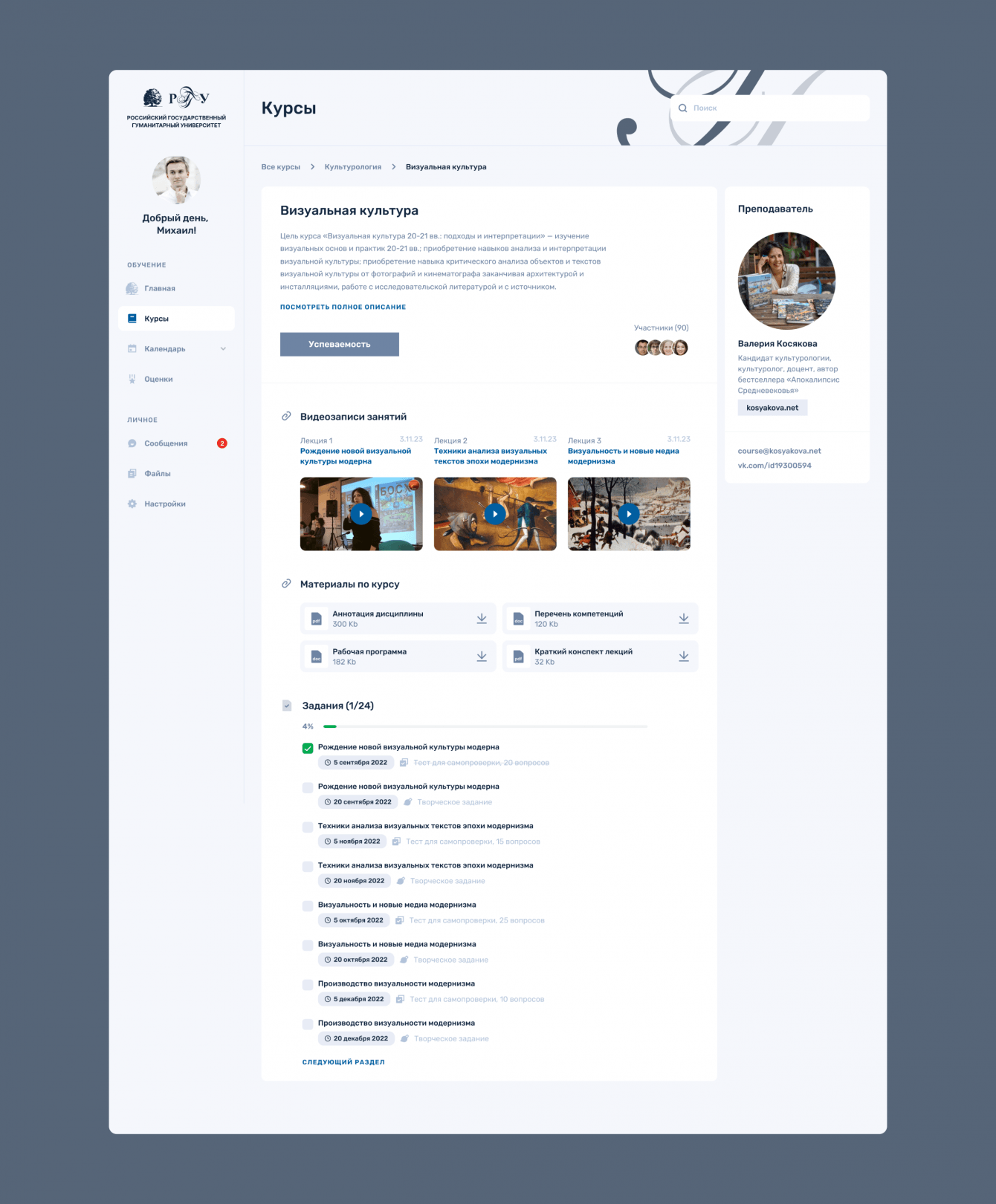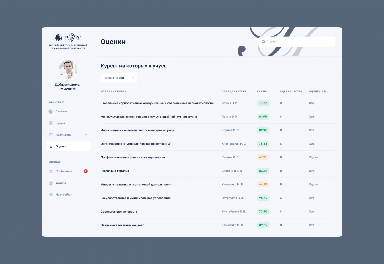 Цель проекта — разработать концепцию дизайна портала дистанционного обучения для Российского государственного гуманитарного университета.