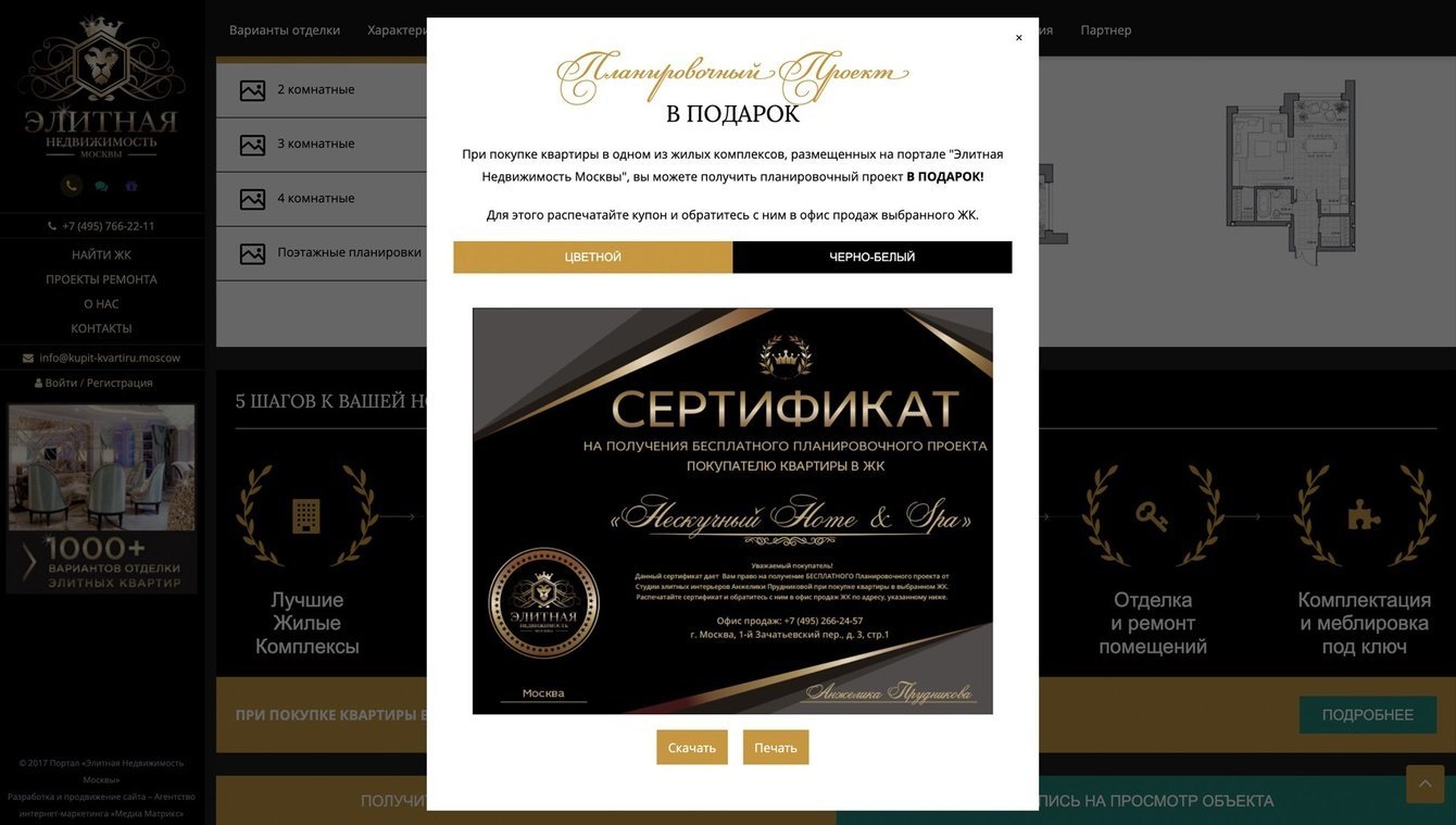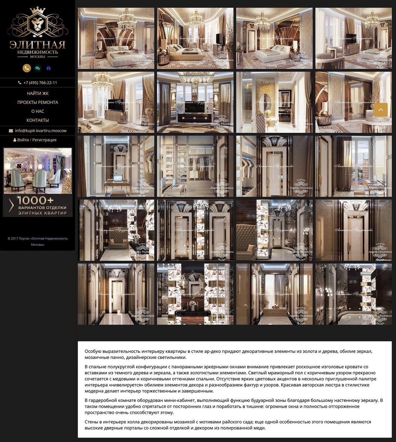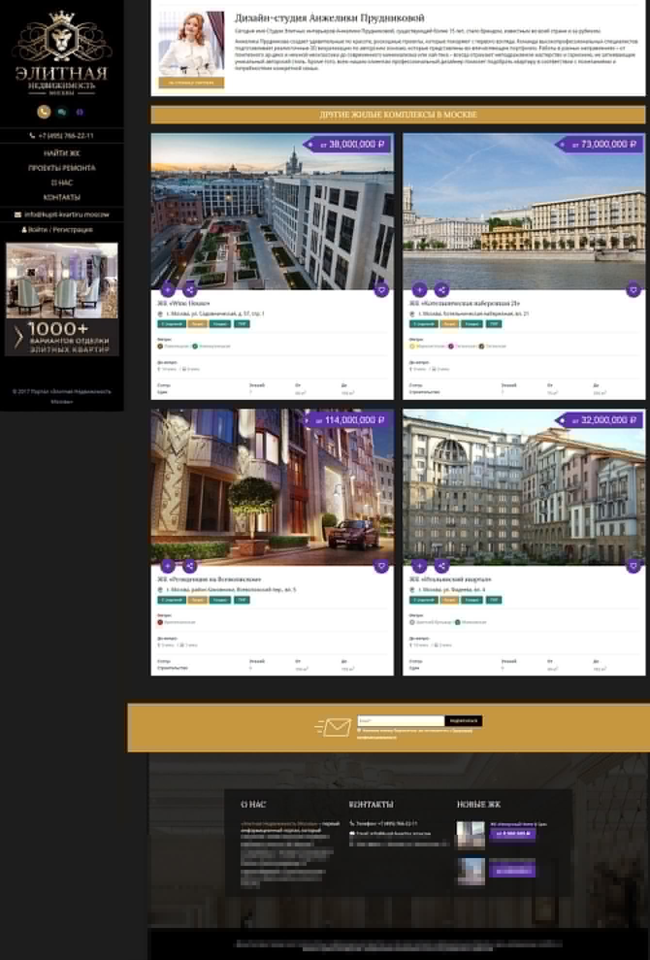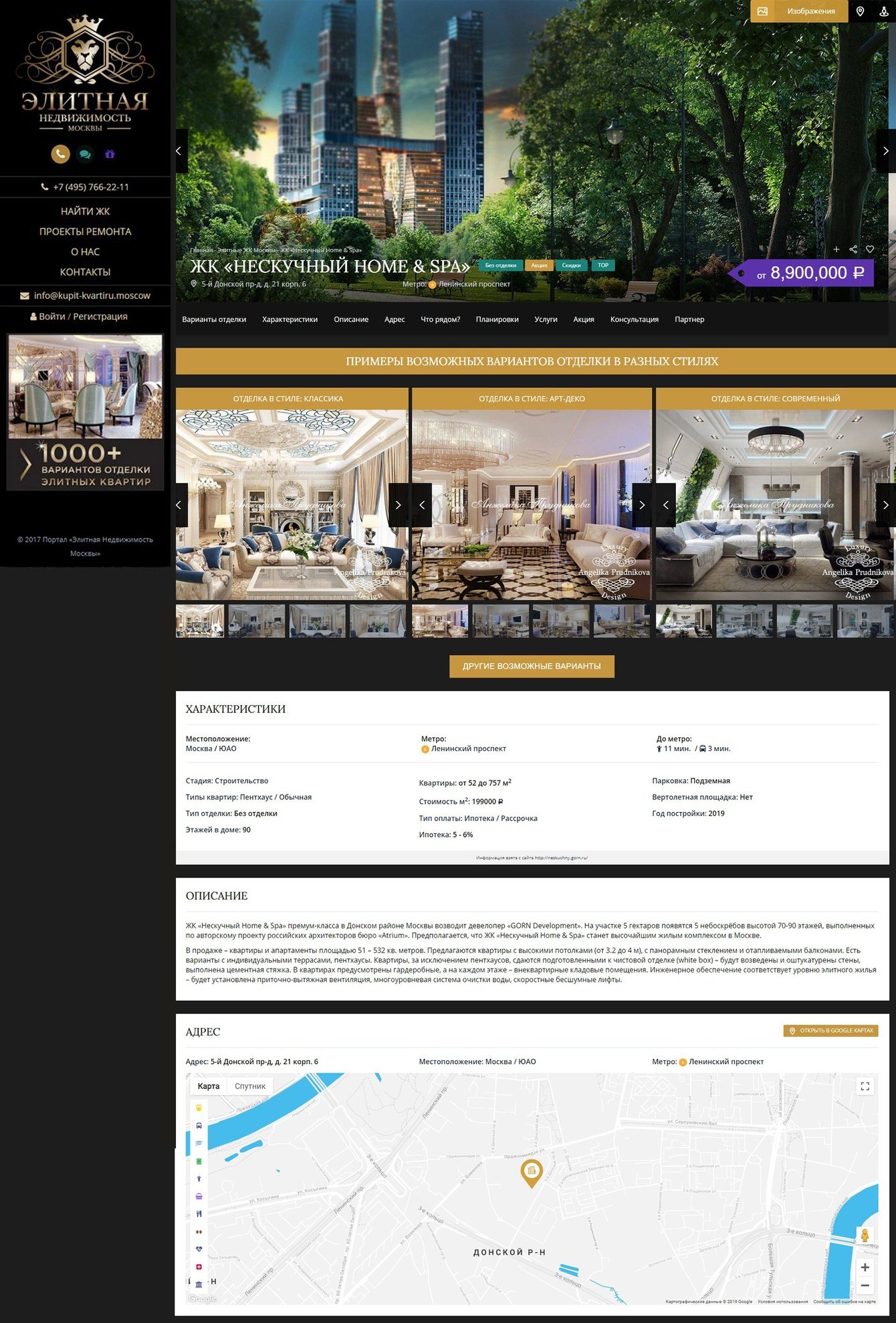 Разработанный компанией «Медиа Матрикс» информационный портал «Элитная недвижимость Москвы» — специализированный ресурс для покупателей недвижимости премиум-класса. На нем можно выбрать подходящий жилой комплекс, получить информацию о стоимости, посмотреть планировки и варианты дизайнерского ремонта квартир.
