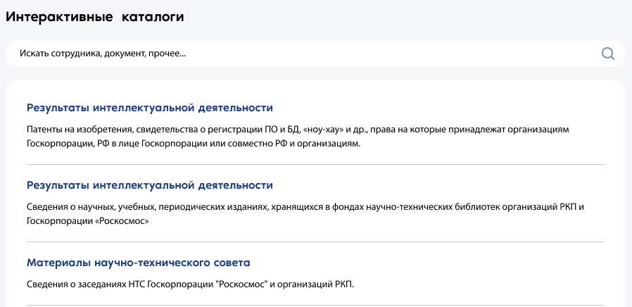 Всю имеющуюся базу контента мы внесли в «Космотеку». В интерактивных каталогах хранятся документы определенной тематики. Есть возможность загружать ролики экспертов для обучения сотрудников. Портал позволяет просмотреть нужные файлы, скачать их на устройство и запросить историю просмотров.