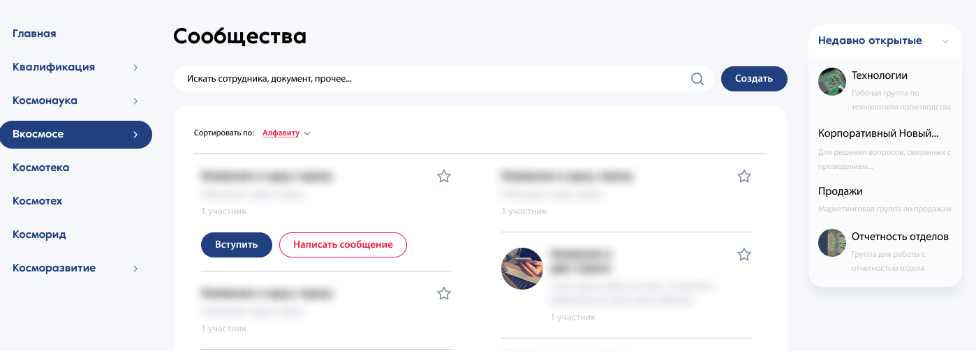 В системе сотрудники сами формируют экспертные и тематические сообщества, чтобы вместе решать проектные задачи. Так сообщества становятся площадкой для общения и обмена опытом и стимулируют развитие инноваций в отрасли.