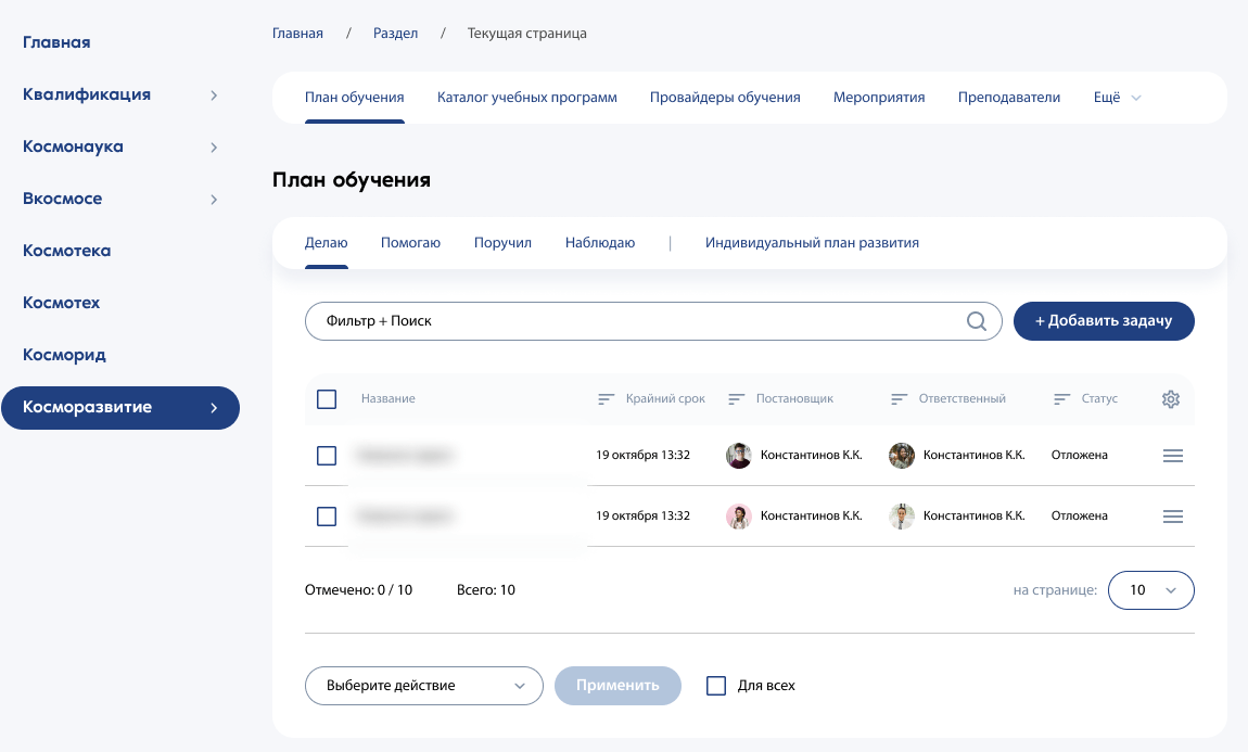 Мы упростили этот процесс: все, что относится к обучению, объединили в разделе «Косморазвитие». Через меню портала можно переключаться между всеми системами: развитие сотрудника, план обучения, каталог учебных программ, данные о преподавателях, электронные курсы. Также все системы были интегрированы в LMS.