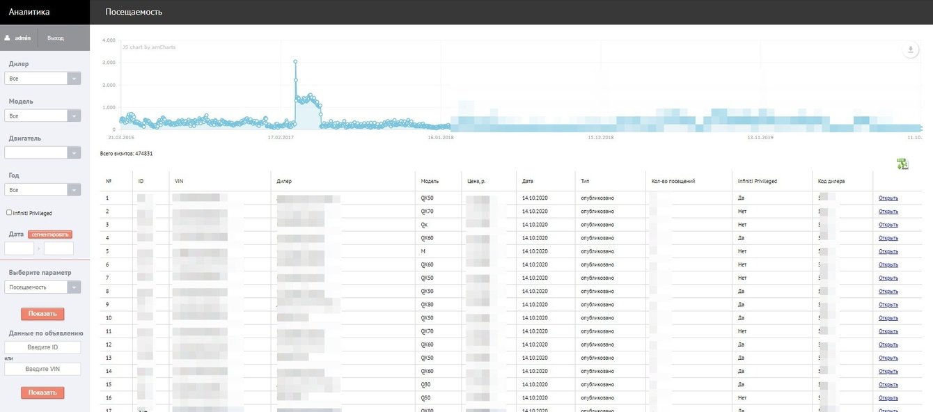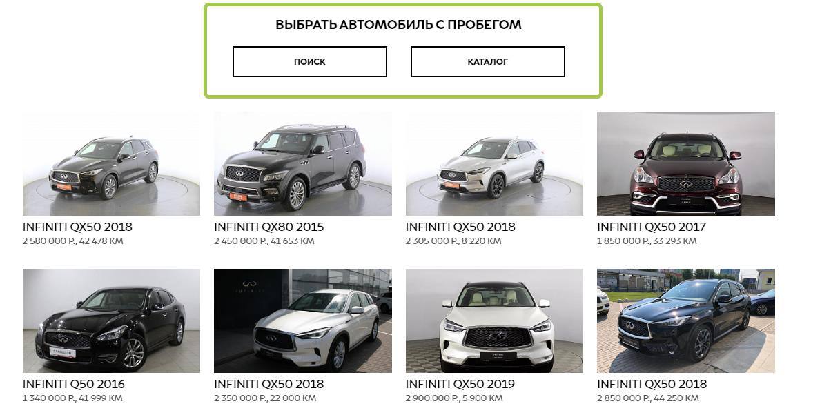 Реализовать удобный инструмент для поиска поддержанных автомобилей INFINITI и разработать аналитический модуль для вывода статистической информации и формирования отчетности.