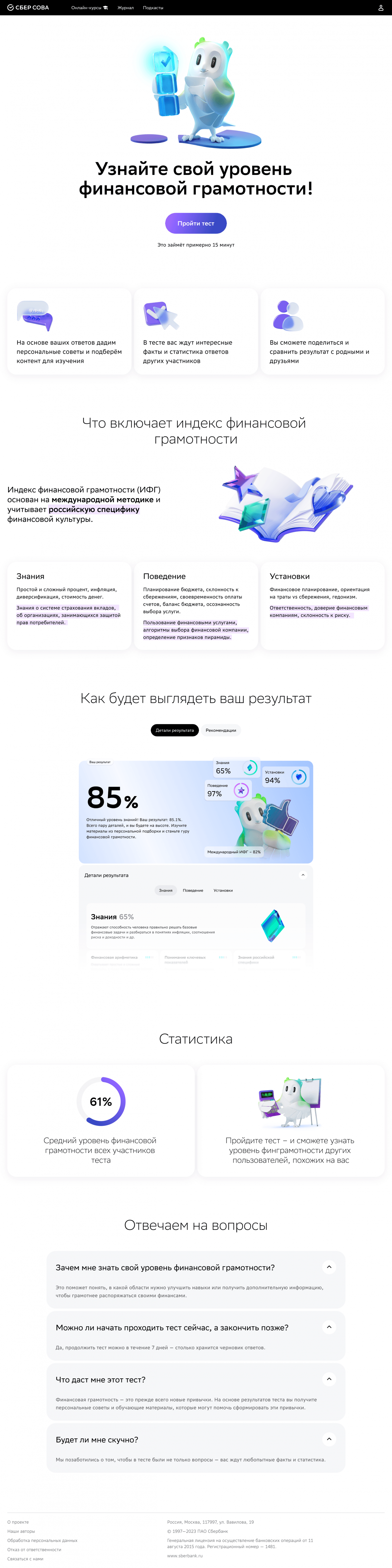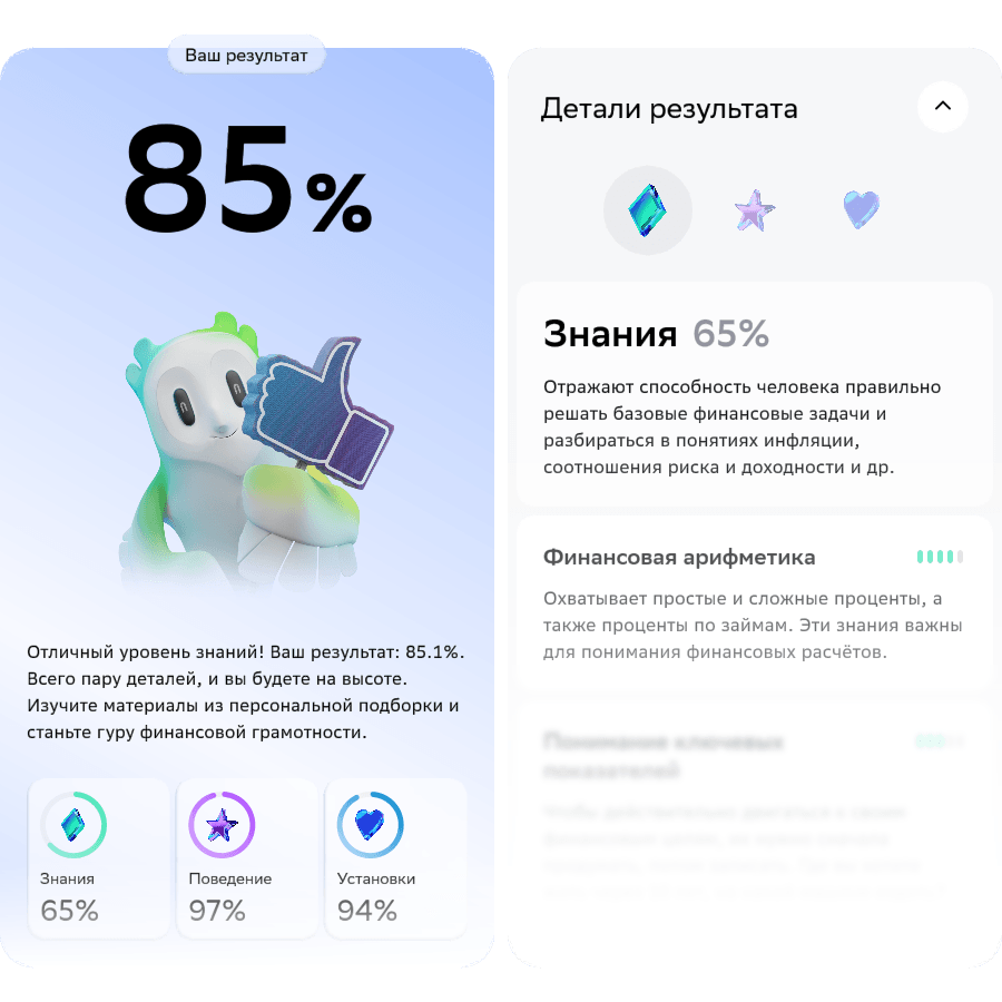 - Индекс финансовой грамотности (ИФГ): интерактивный тест, который оценивает уровень финансовой грамотности и предоставляет персонализированные рекомендации для роста.