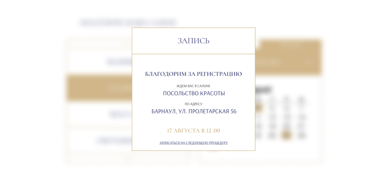 - Внедрена система онлайн-записи, позволяющая клиентам легко выбирать специалиста, услугу и время посещения.