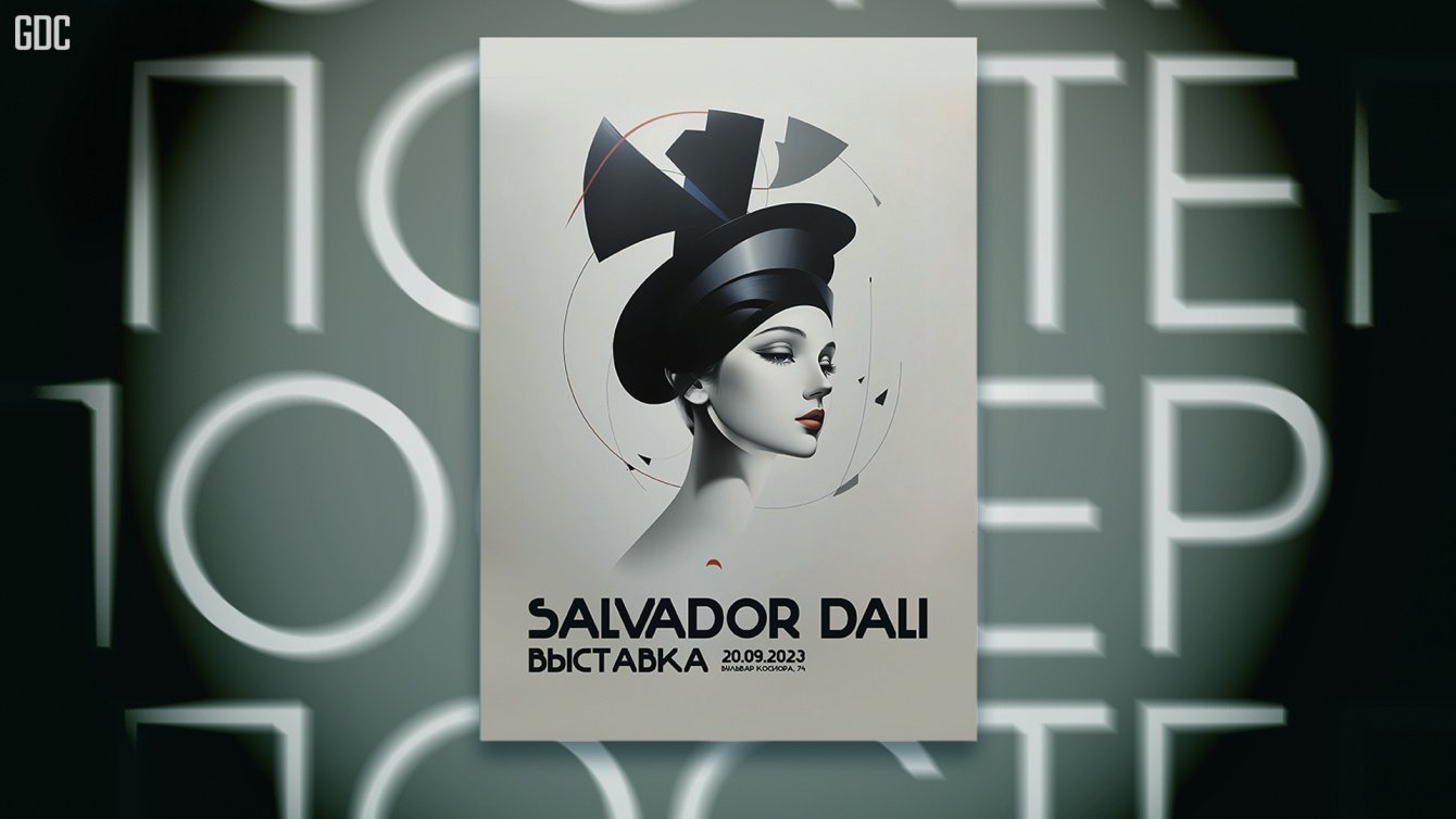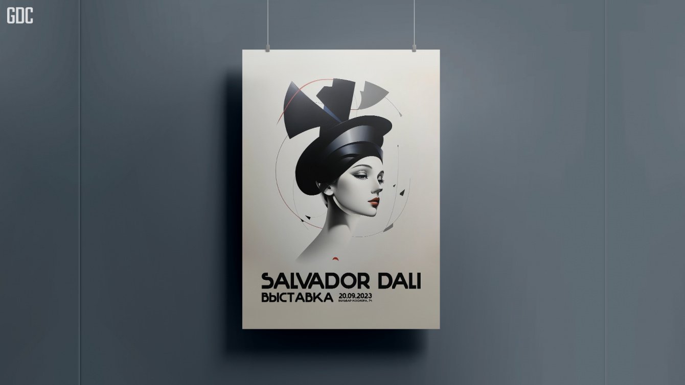 Создать постер в стиле Сальвадора Дали для выставки картин Сальвадора Дали. Дизайн должен быть минималистичным и не перегруженным деталями