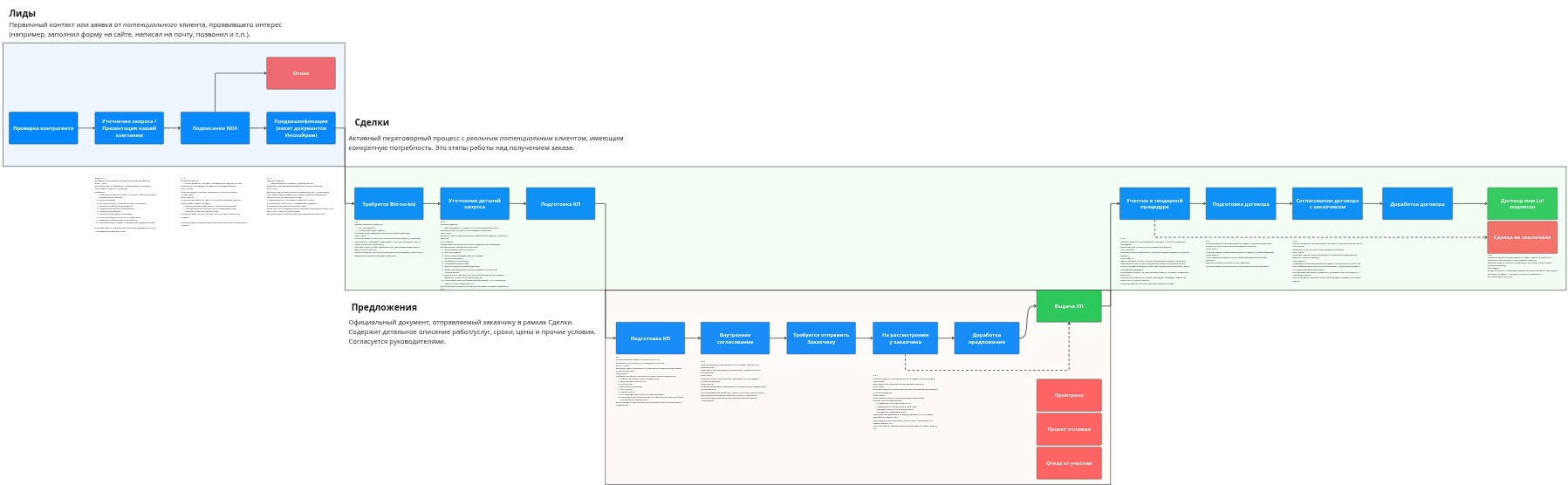 На основании полученных данных, совместно с заказчиком, мы спроектировали «жизненный путь» для лидов, сделок и коммерческих предложений с учётом специфики внутренних процессов компании Inspirem:
