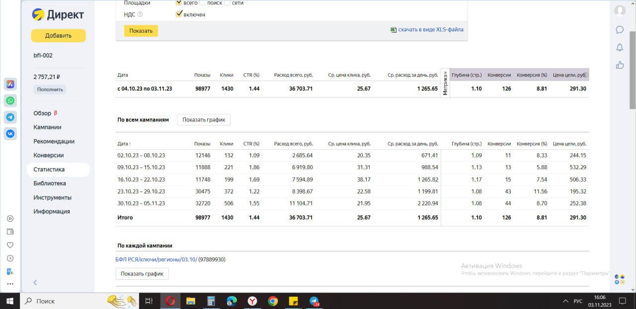 Далее вы увидите скриншоты из обоих кабинетов директа.