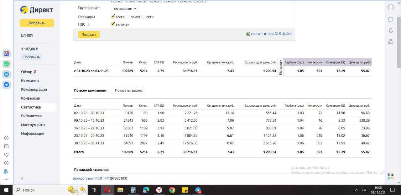 Опуская детали по анализу срезов аудитории, мы оптимизировали и оставили работать только 2 РСЯ, которые работали по ключам банкротства и списания долгов.