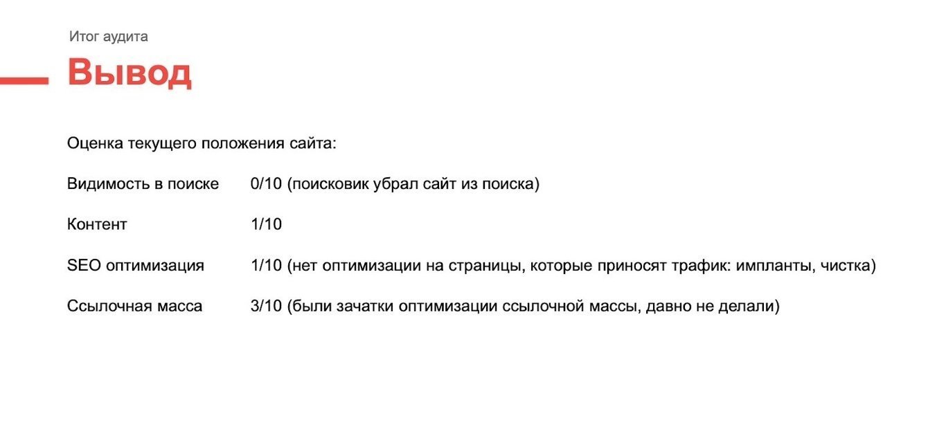 Далее мы провели более детальный технический аудит, вот какие проблемы были обнаружены: